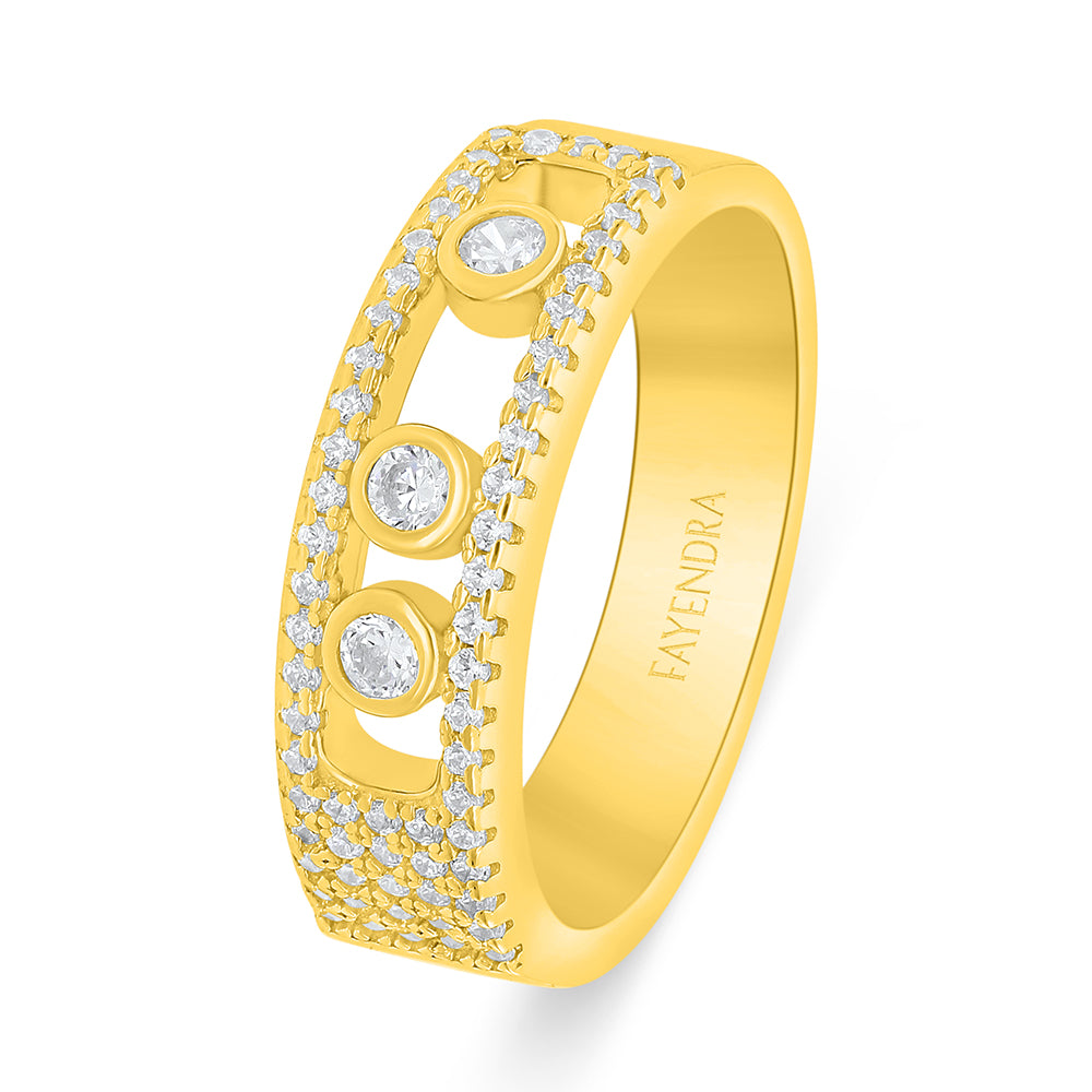 خاتم من الفضة الخالصة عيار 925 مطلي ذهبي مرصع فص ابيض