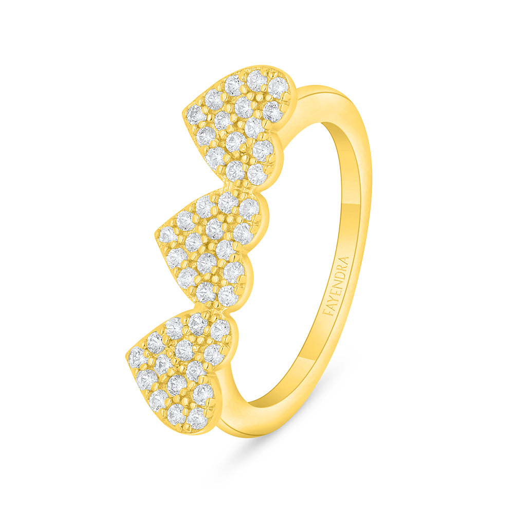 يعكس قيمة شعورك أكثر مما يعكس الضوء، خاتم أنيق من الفضة الإسترلينية عيار 925، مطلي بطبقة من اللون الذهبي. يتميز بتصميم رقيق من سلسلة قلوب متتابعة، تزيّنها أحجار زركون أبيض متلألئة تضفي عليه لمسة من النعومة والأنوثة. مثالي كهدية لشخص عزيز في يوم الحب، أو لتدللي نفسك بإطلالة راقية. احصلي عليه الآن!