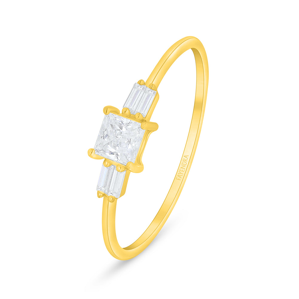 خاتم من الفضة الخالصة عيار 925 مطلي ذهبي مرصع فص ابيض