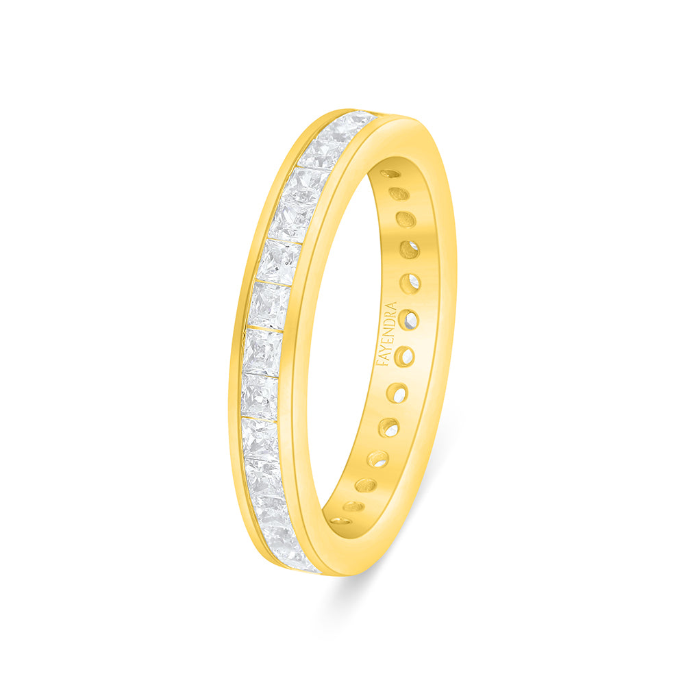 خاتم من الفضة الخالصة عيار 925 مطلي ذهبي مرصع فص ابيض