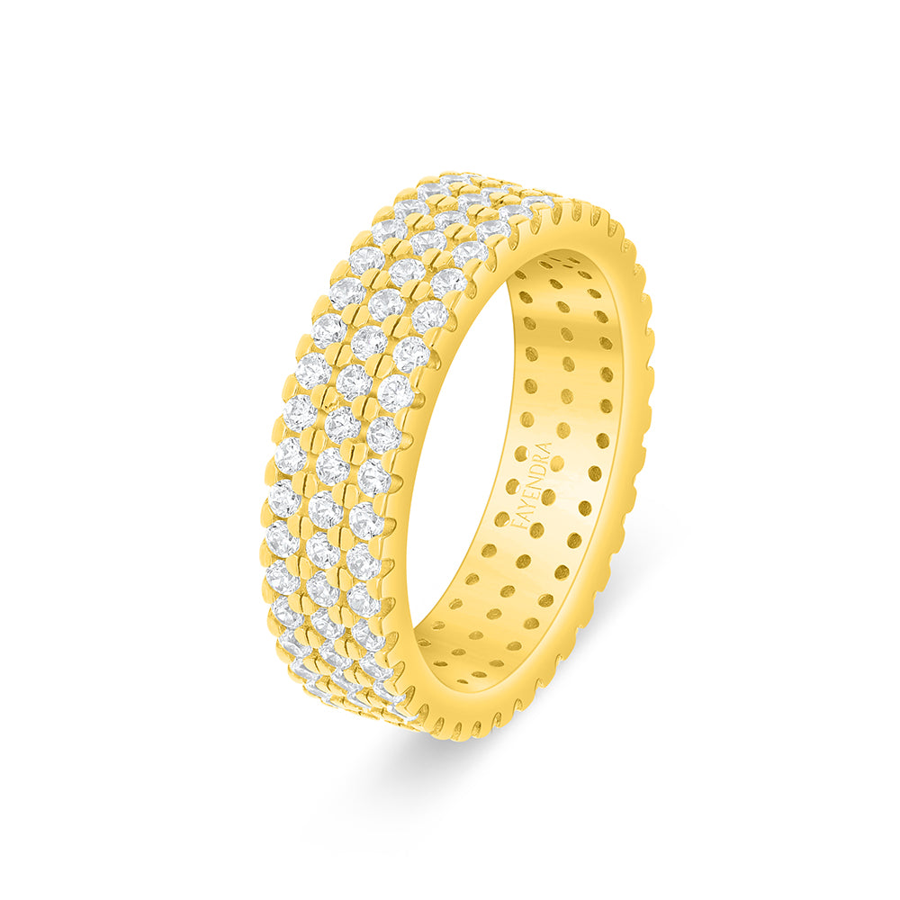 Total Weight: 5.4g حين تتناغم اللمسات الأصيلة مع حداثة العصر، تتجلى هذه التحفة المميزة من فايندرا، خاتم فاخر مصنوع من الفضة الخالصة عيار 925، ومطلي بطبقة من اللون الذهبي الفاخر. يتميز بتصميم أنيق لإطار عريض يزدان بصفوف متراصة من أحجار الزركون الأبيض، مرصوفة بدقة وإتقان، لتخلق لمعانًا فريدًا وانعكاسًا آسرًا للضوء في كل حركة. أضيفيه الآن إلى سلة مشترياتك!