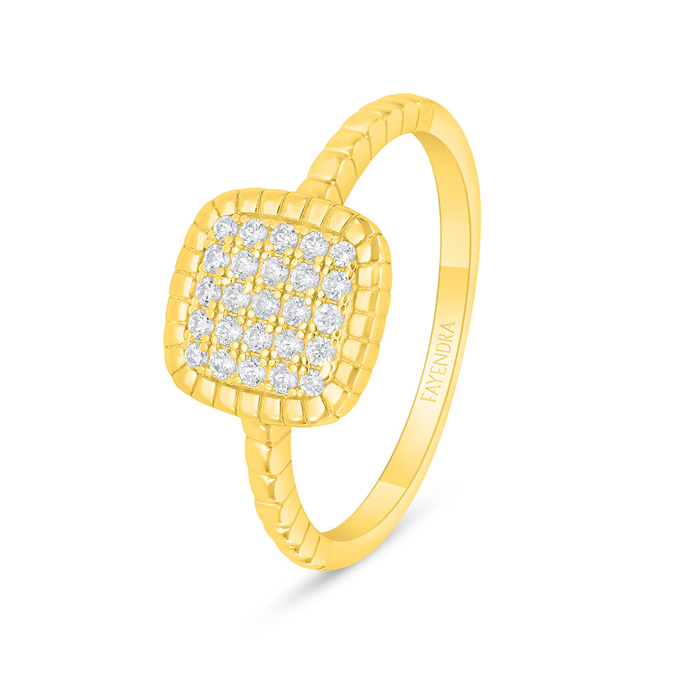 Total Weight: 1.9g عززي من جمال أناملك مع هذا الخاتم المميز من فايندرا. مصاغ من الفضة الإسترلينية الخالصة عيار 925، ومطلي بطبقة لامعة من اللون الذهبي الخلاب. حيث يتميّز بتصميم بسيط وأنيق على شكل مربع بأطراف مجدولة، تتوسّطه تشكيلة رائعة من أحجار الزركون الأبيض الفاخرة. قطعة مثالية للمناسبات الخاصة، تجمع بين الأناقة الهادئة والبريق اللافت. لا تترددي أضيفيه إلى سلة مشترياتك الآن!
