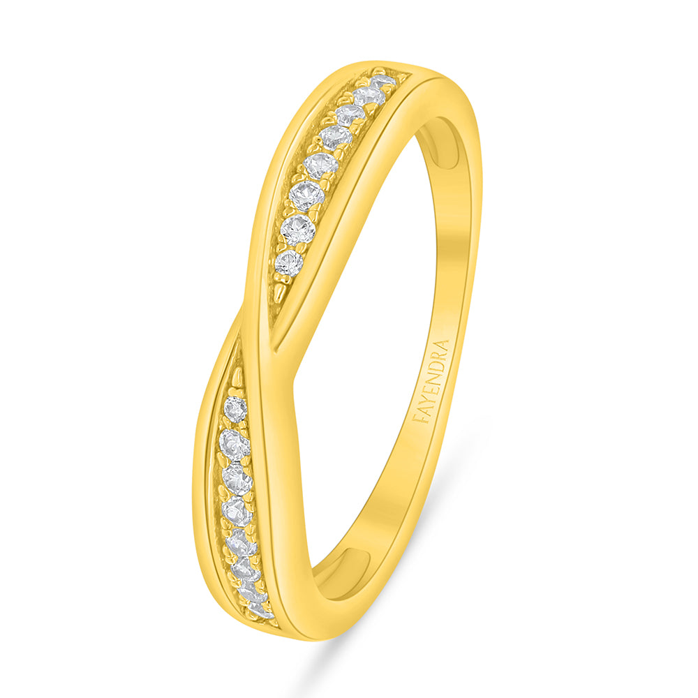 Total Weight: 2.6g دلّلي نفسك بهذا الخاتم الذي يُشكّل تحفة فنية وإنجازًا تقنيًا. صمّم حرفيّو فايندرا هذا الخاتم من الفضة الخالصة عيار 925، مطليًا بالذهبي ، ومرصّعًا بزركون أبيض لامع يعكس الضوء مع كل حركة، في تصميم متقاطع ناعم ولافت، سواء ارتديته بمفرده أو أضفته إلى مجموعة خواتم متناسقة معه، ليلامس أناملك برقة مفعمة بالفخامة والرقي. اقتنيه الآن!