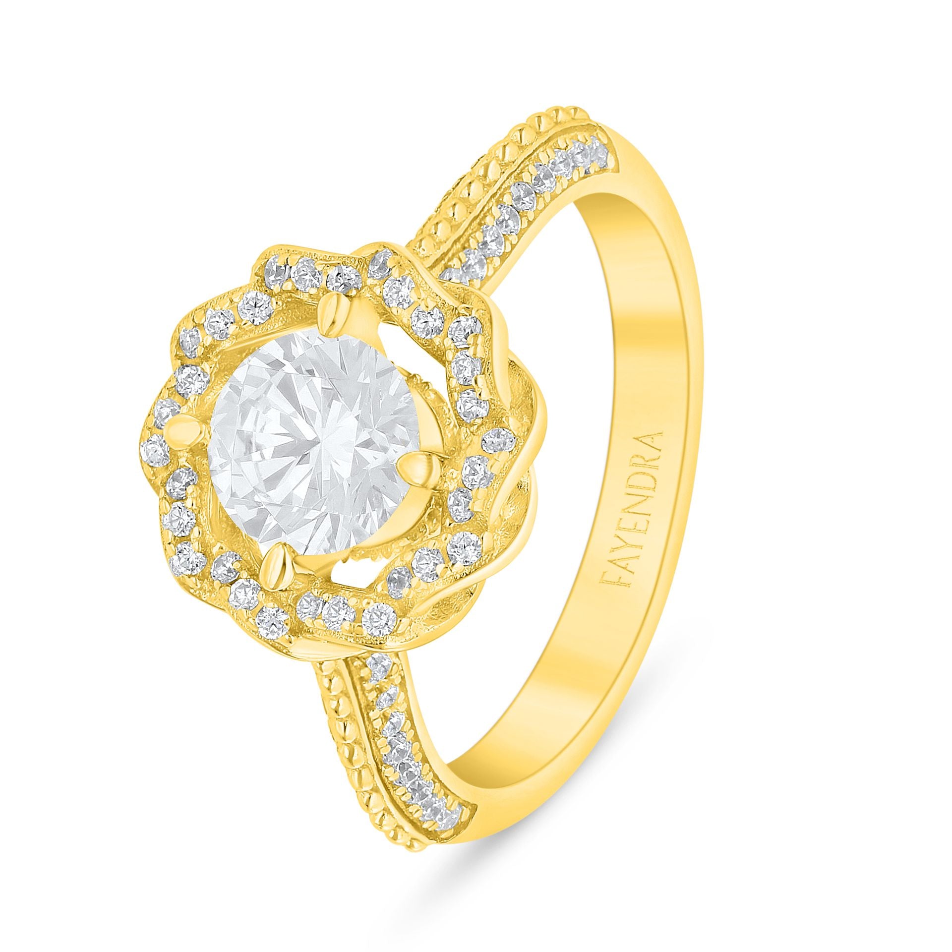 خاتم من الفضة الخالصة عيار 925 مطلي ذهبي مرصع فص ابيض