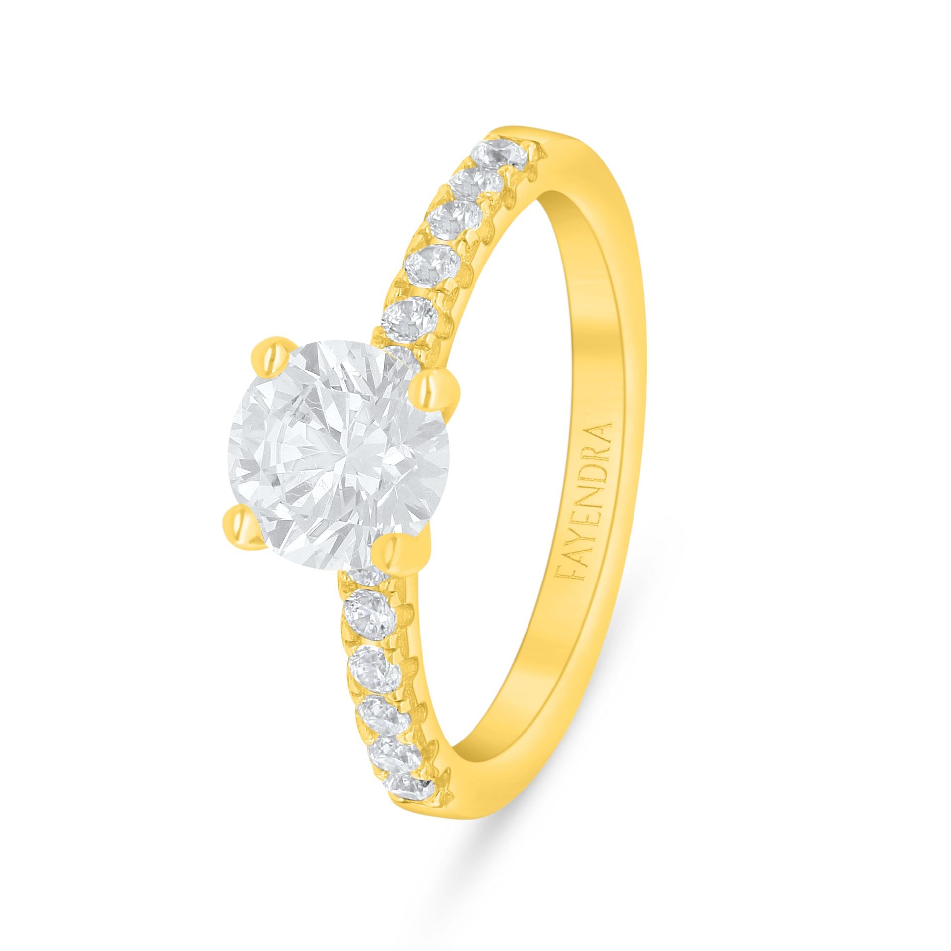 خاتم من الفضة الخالصة عيار 925 مطلي ذهبي مرصع فص ابيض