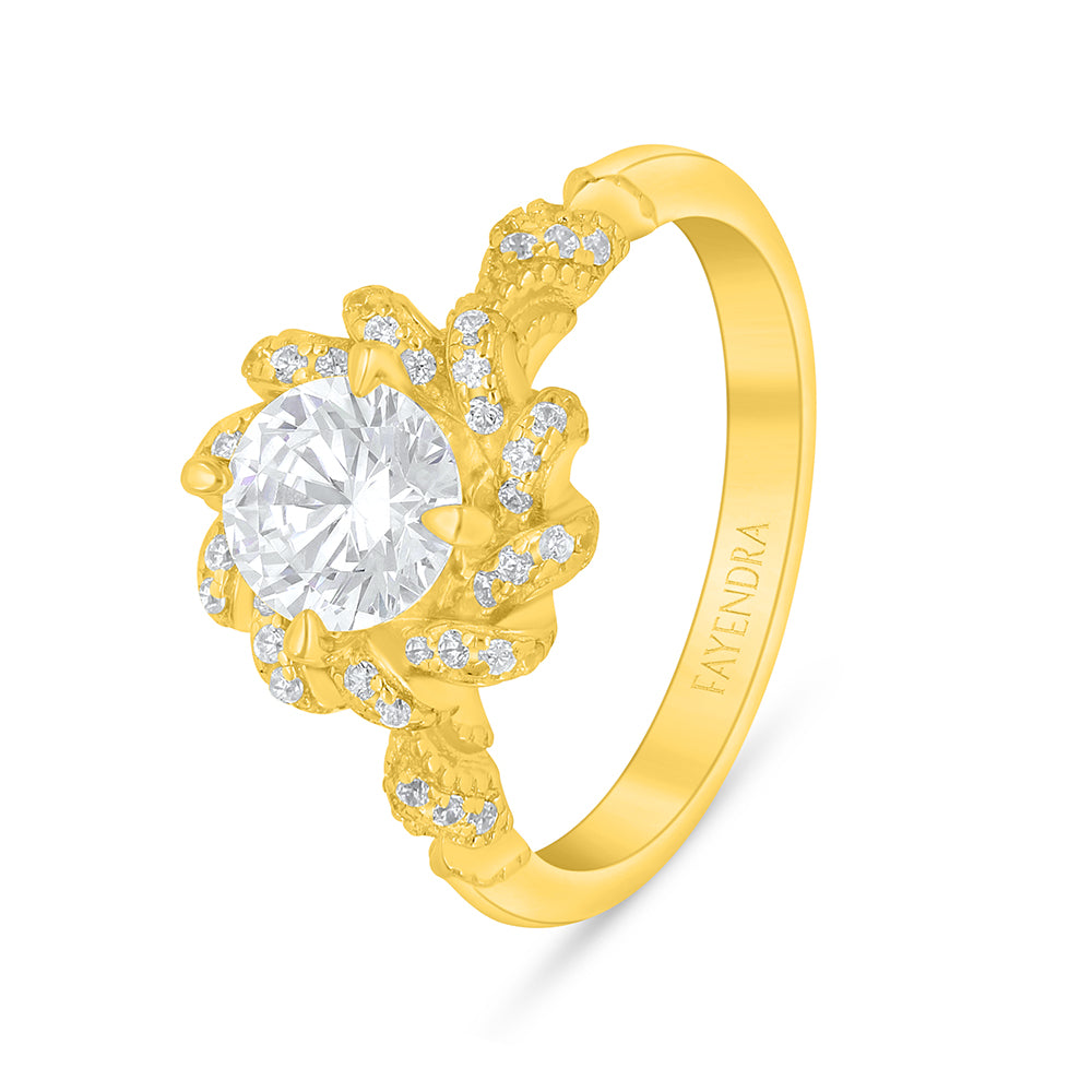 Total Weight: 4.5g أثري حضوركِ المتوهّج مع خاتم فايندرا المصنوع من الفضة الخالصة عيار 925، والمطلي بالذهبي يزيد من اشراقتك. صُمّم على شكل زهرة متفتحة مُزيّنة بجوهرة زركون أبيض مضيء يعكس الضوء مع كل حركة، ويحيط بها إطار من الزركون الأبيض المقطوع بحجم أصغر، ليعكس الضوء مع كل حركة ويُعبّر عن إقبالكِ على الحياة. اقتنيه الآن قبل أن ينفد!