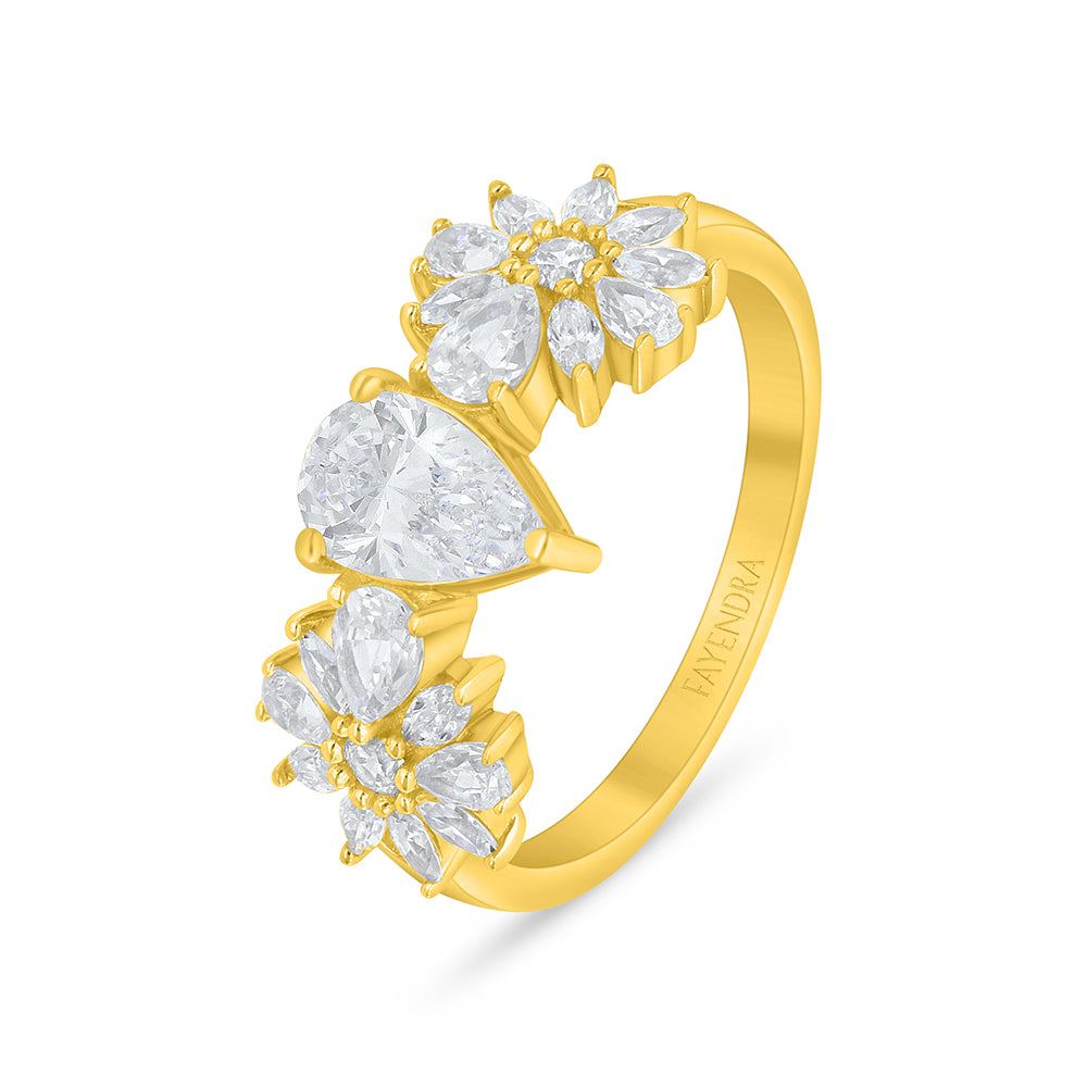 خاتم من الفضة الخالصة عيار 925 مطلي ذهبي مرصع فص ابيض