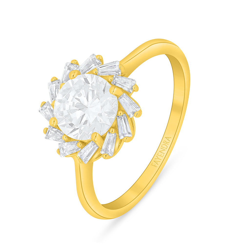 خاتم من الفضة الخالصة عيار 925 مطلي ذهبي مرصع فص ابيض