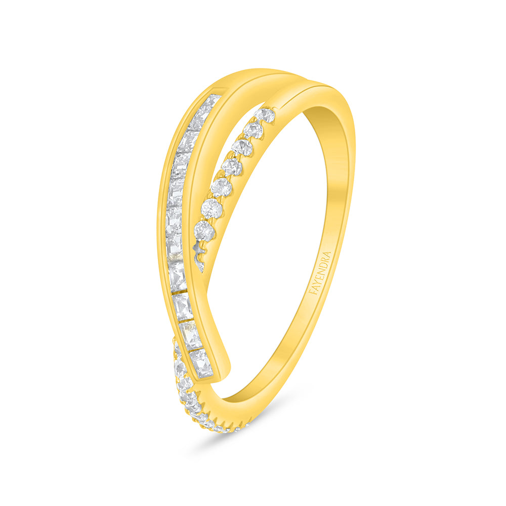 Total Weight: 2g خاتم من فايندرا مصنوع من الفضّة الخالصة عيار 925 والمطلي بالذهب ليحافظ على بريقه الأخّاذ لأطول وقت! تصميمه العصري ينساب بخطين متوازيين متقاطعين برشاقة، يتزين أحدهما بترصيع هندسي من أحجار الزركون البيضاء بقصّة الباجيت المستطيلة المرصوفة بإتقان، بينما يتألق الآخر بسلسلة متناغمة من أحجار الزركون المستديرة بقصّة بريليانت المضيئة. مزيج لافت يجمع بين صرامة الخطوط المستطيلة ورقّة البريق الدائري، ليمنحك قطعة متوازنة تعكس الحداثة والأناقة معًا. اجعليه لمستك المميزة وتألقّي بإطلالة تنبض بالفرادة والسحر!