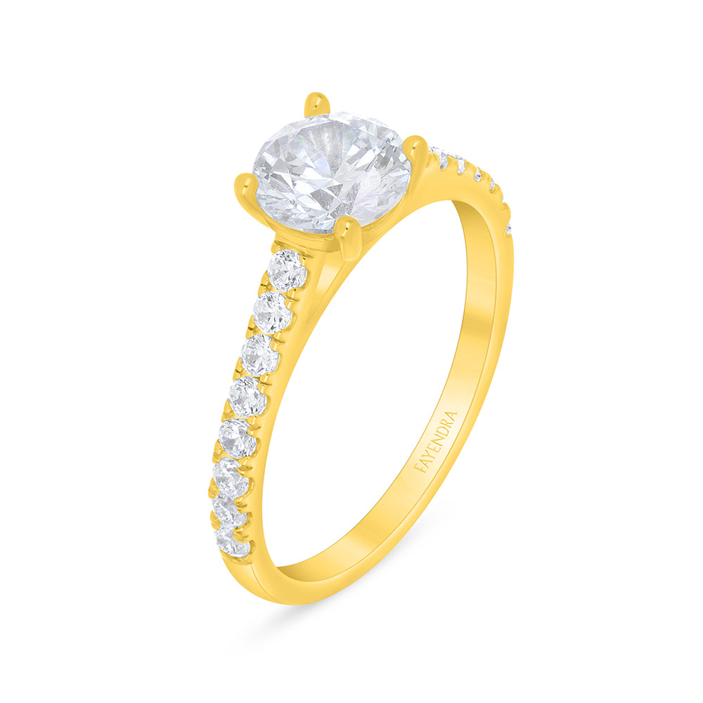 خاتم من الفضة الخالصة عيار 925 مطلي ذهبي مرصع فص ابيض