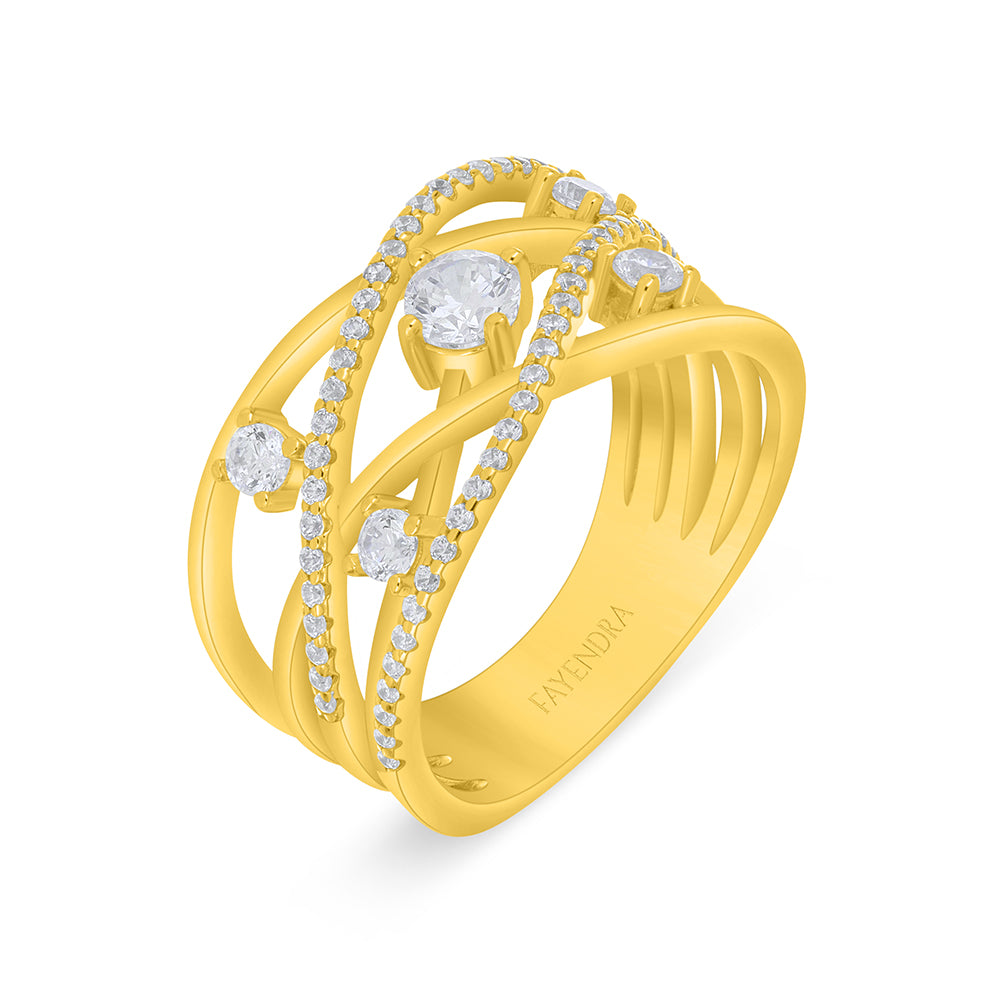 خاتم من الفضة الخالصة عيار 925 مطلي ذهبي مرصع فص ابيض