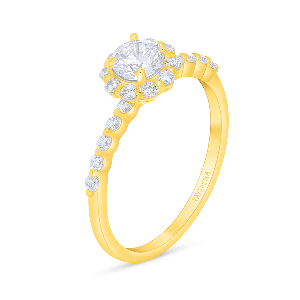 خاتم من الفضة الخالصة عيار 925 مطلي ذهبي مرصع فص ابيض