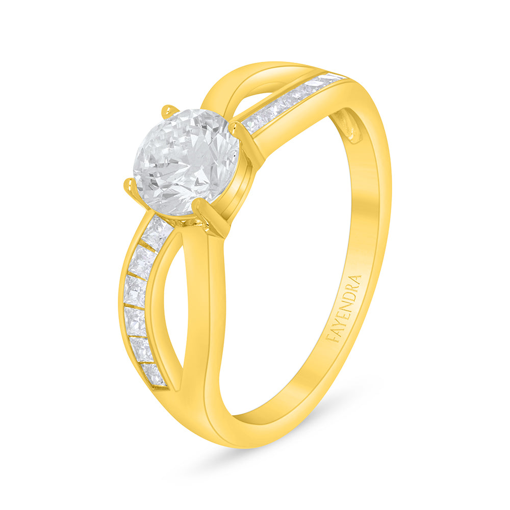 خاتم من الفضة الخالصة عيار 925 مطلي ذهبي مرصع فص ابيض