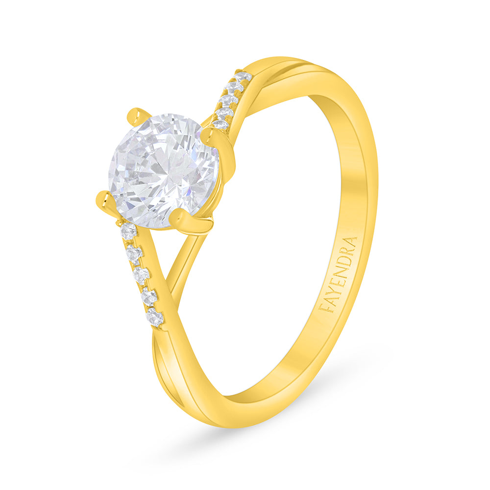 خاتم من الفضة الخالصة عيار 925 مطلي ذهبي مرصع فص ابيض