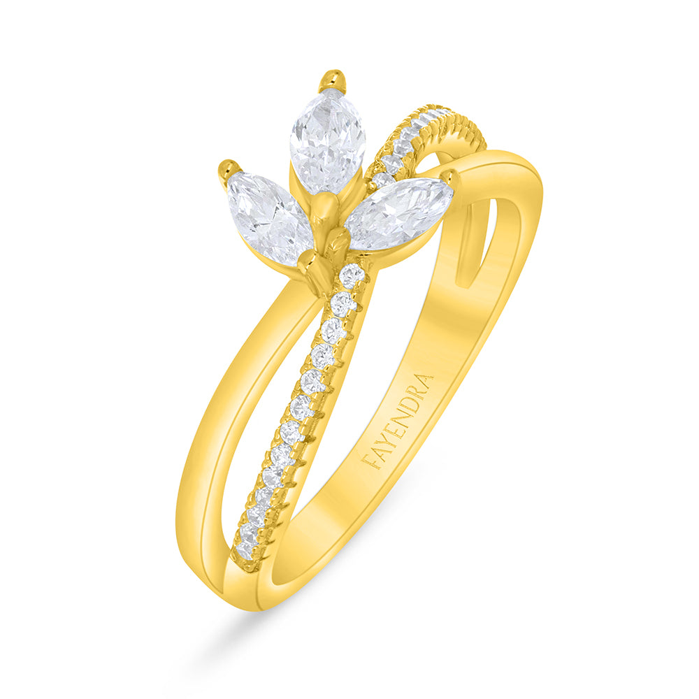 خاتم من الفضة الخالصة عيار 925 مطلي ذهبي مرصع فص ابيض