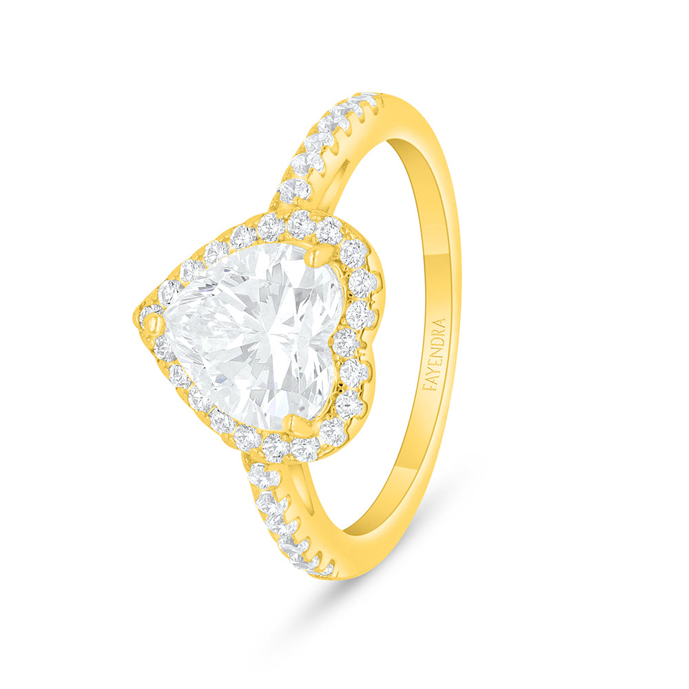 خاتم من الفضة الخالصة عيار 925 مطلي ذهبي مرصع فص ابيض
