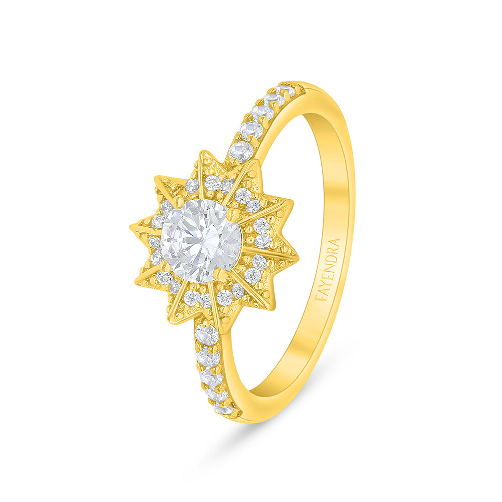 خاتم من الفضة الخالصة عيار 925 مطلي ذهبي مرصع فص ابيض