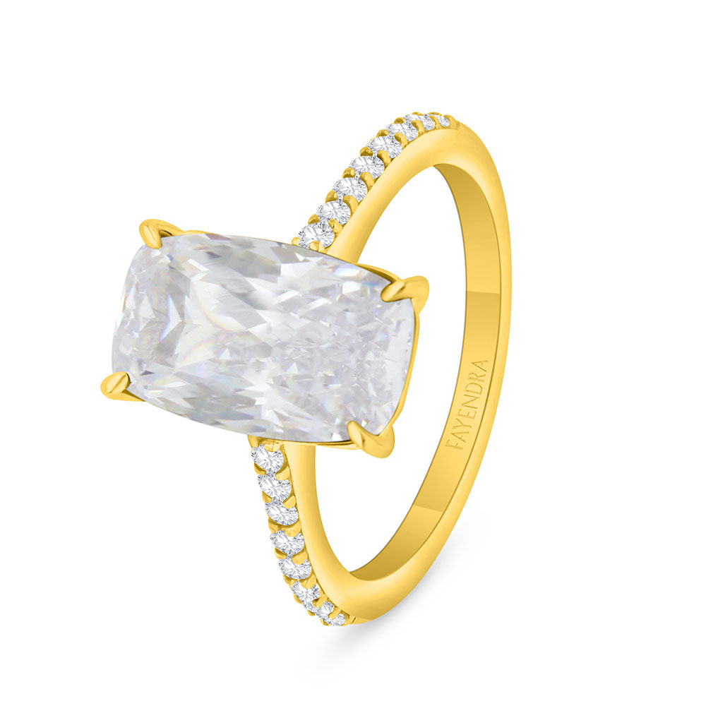خاتم من الفضة الخالصة عيار 925 مطلي ذهبي مرصع فص ابيض