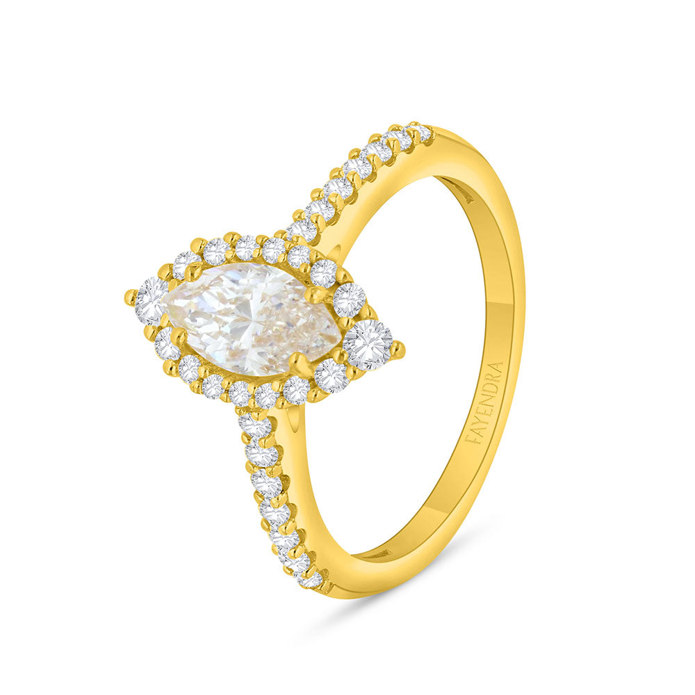 خاتم من الفضة الخالصة عيار 925 مطلي ذهبي مرصع فص ابيض