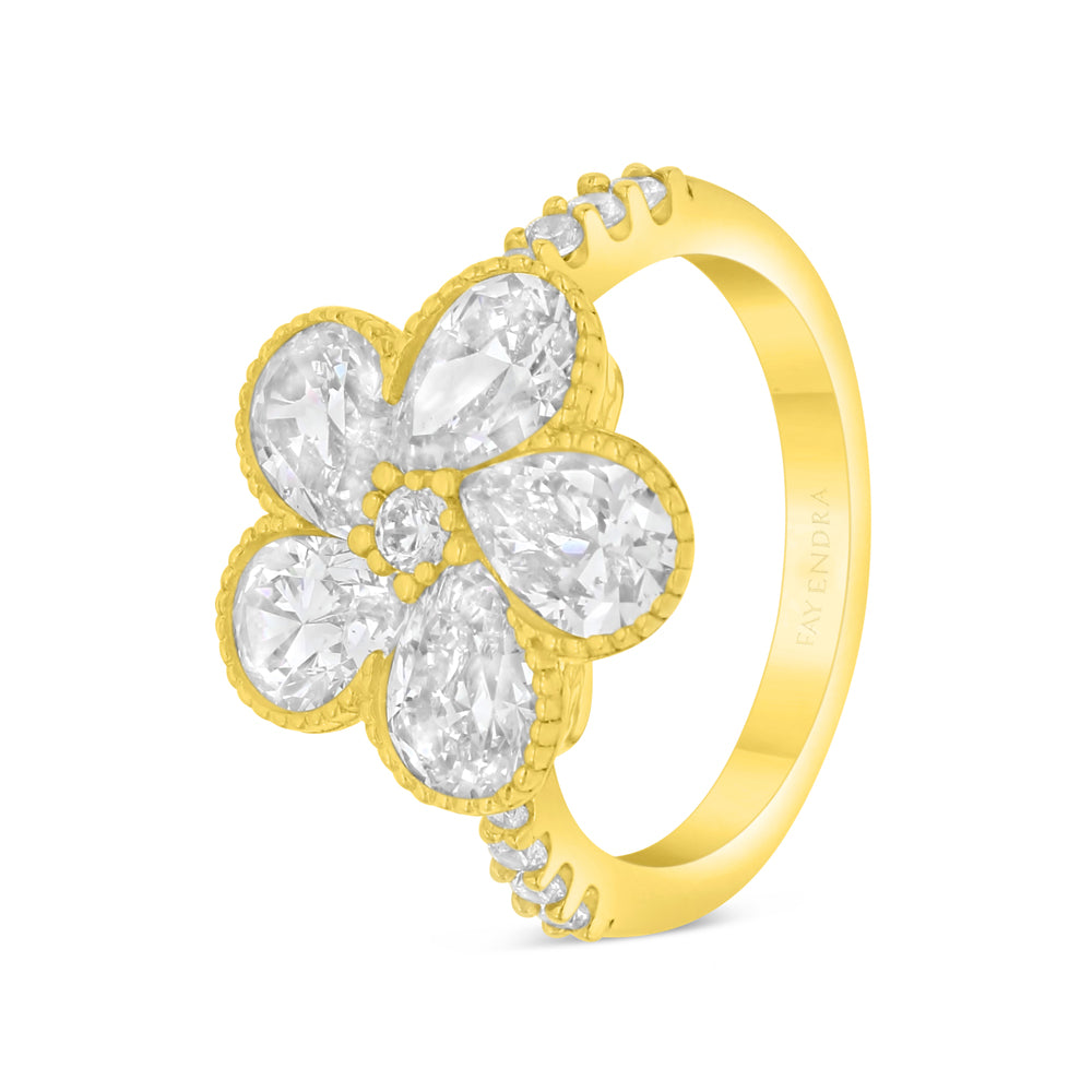 خاتم من الفضة الخالصة عيار 925 مطلي ذهبي مرصع فص ابيض