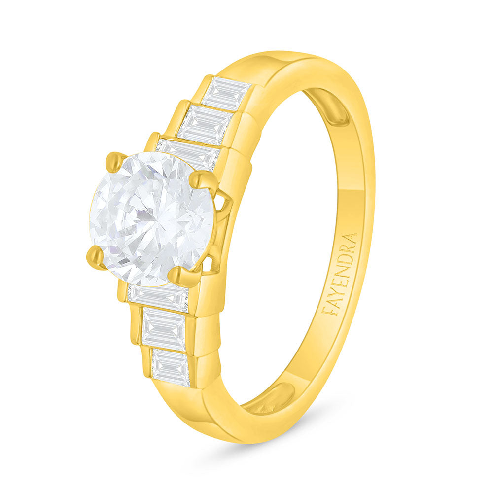خاتم من الفضة الخالصة عيار 925 مطلي ذهبي مرصع فص ابيض
