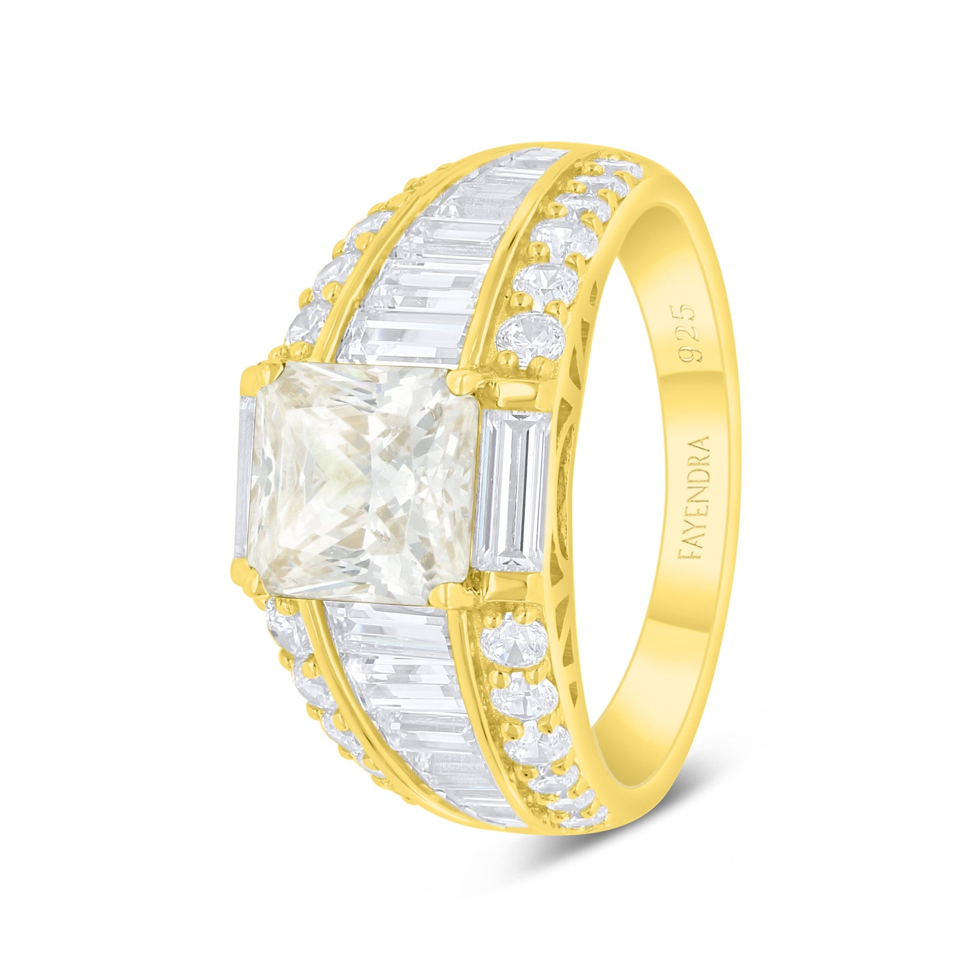 خاتم من الفضة الخالصة عيار 925 مطلي ذهبي مرصع زركون الكناري الالماسي و فص ابيض