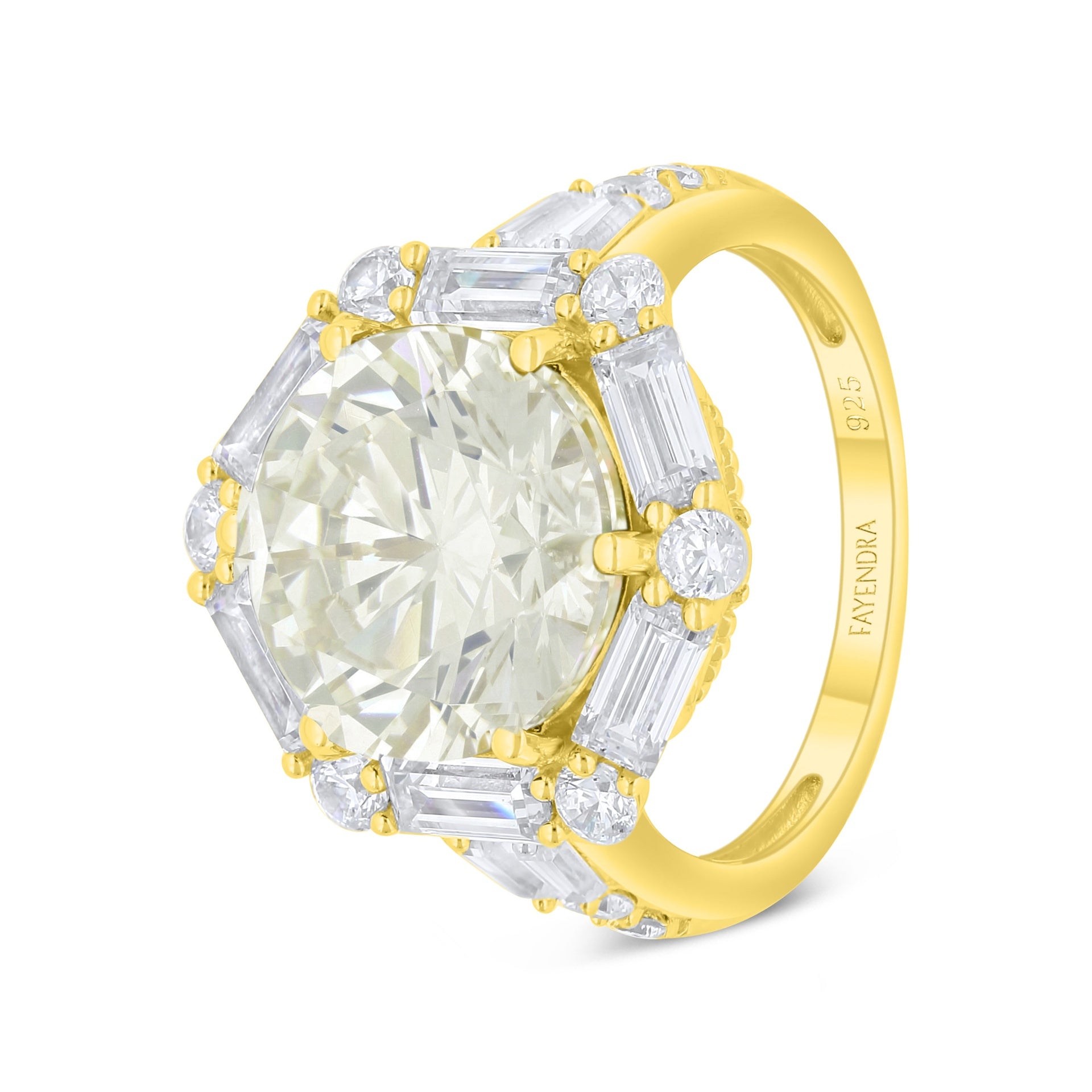 خاتم من الفضة الخالصة عيار 925 مطلي ذهبي مرصع زركون الكناري الالماسي و فص ابيض
