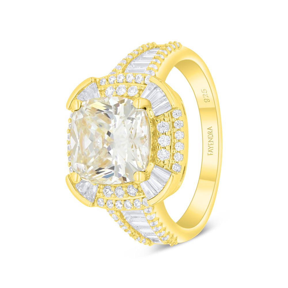خاتم من الفضة الخالصة عيار 925 مطلي ذهبي مرصع زركون الكناري الالماسي و فص ابيض