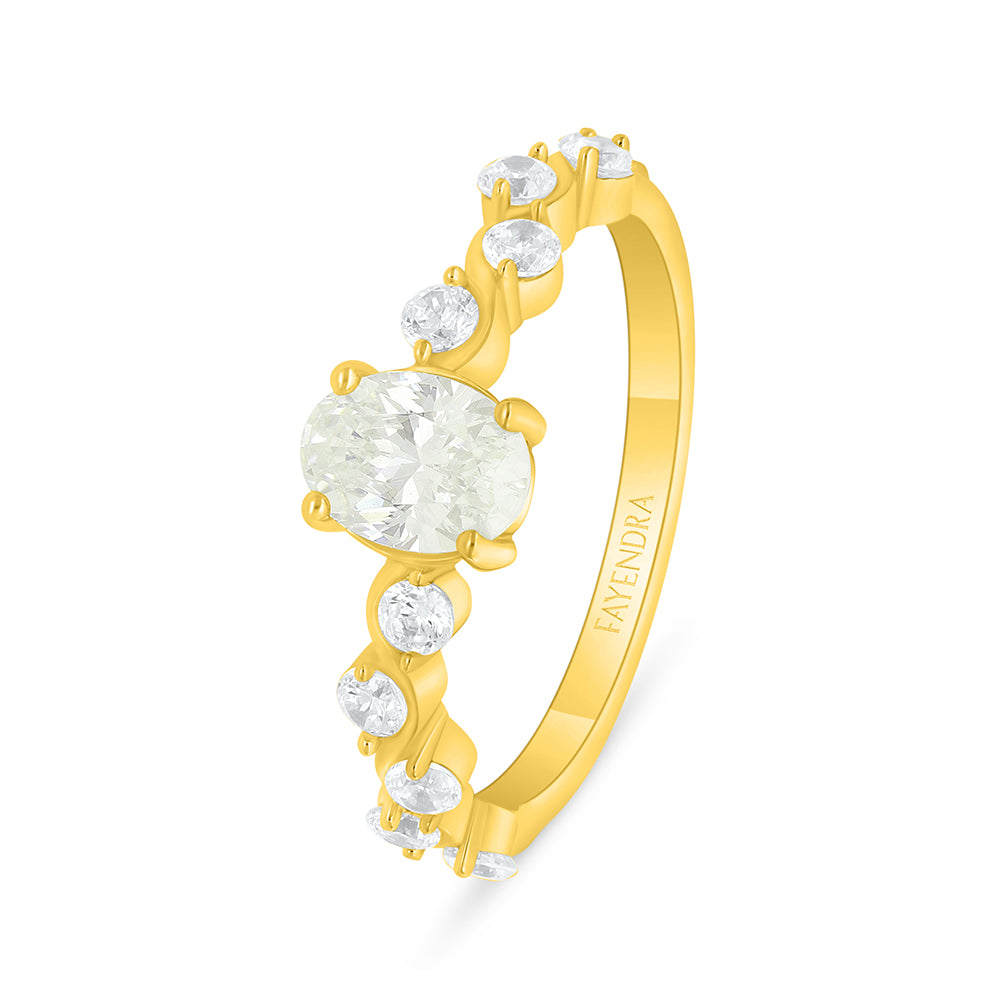 Total Weight: 2.2g ارتقي بأناقتك مع لمسة من الفخامة االخالدة مع خاتم فايندرا الفاخر مصنوع من فضة نقية عيار 925 مطلي بالذهبي، يأتيك بتصميم أنثوي جذّاب يتوسطه حجر زركون أصفر كناري بلمعة الألماس بيضاوي تزيّنه أحجار مستديرة متألقة من الزركون الأبيض، مرصوفة بأسلوب متموّج يعكس رقي التفاصيل.اختاري التألق، وأضيفيه إلى سلتك الآن!