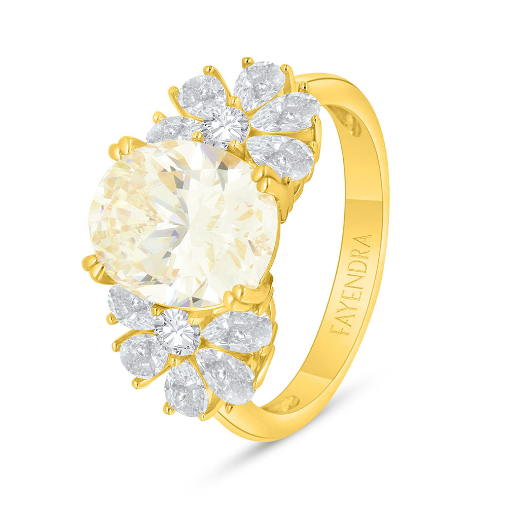 خاتم من الفضة الخالصة عيار 925 مطلي ذهبي مرصع زركون الماسي كناري و فص ابيض
