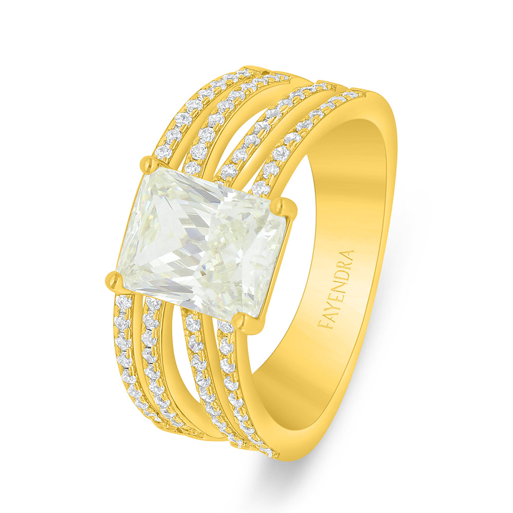 خاتم من الفضة الخالصة عيار 925 مطلي ذهبي مرصع بالزركون الكناري الالماسي و فص ابيض