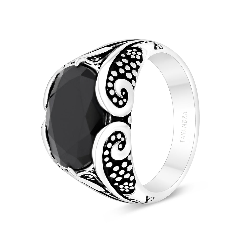 خاتم رجالي فضة عيار 925 مطلي روديوم و اسود مرصع احجار اونكس سبينل