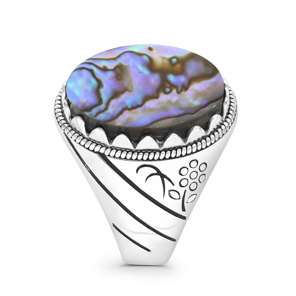 خاتم رجالي فضة عيار 925 مطلي روديوم و اسود مرصع احجار صدف استرالي