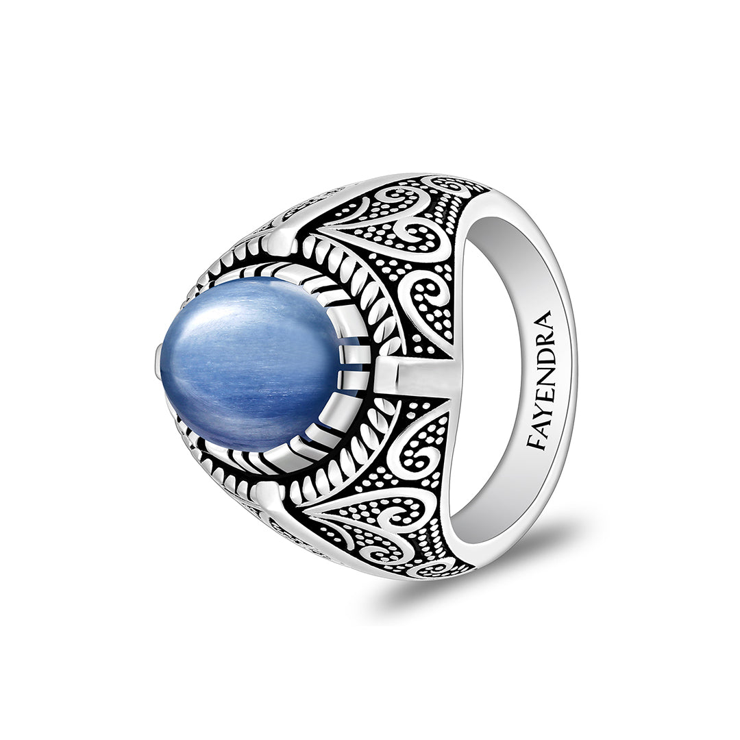 خاتم رجالي من الفضة الخالصة عيار 925 مطلي روديوم و اسود مرصع احجار كيانيت طبيعي كابشون