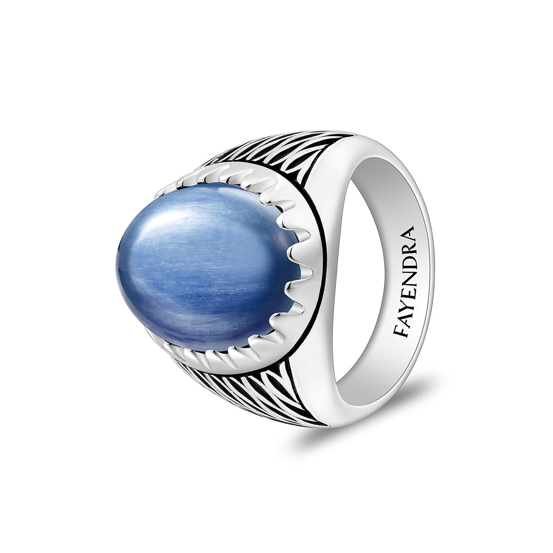 خاتم رجالي من الفضة الخالصة عيار 925 مطلي روديوم و اسود مرصع احجار كيانيت طبيعي كابشون