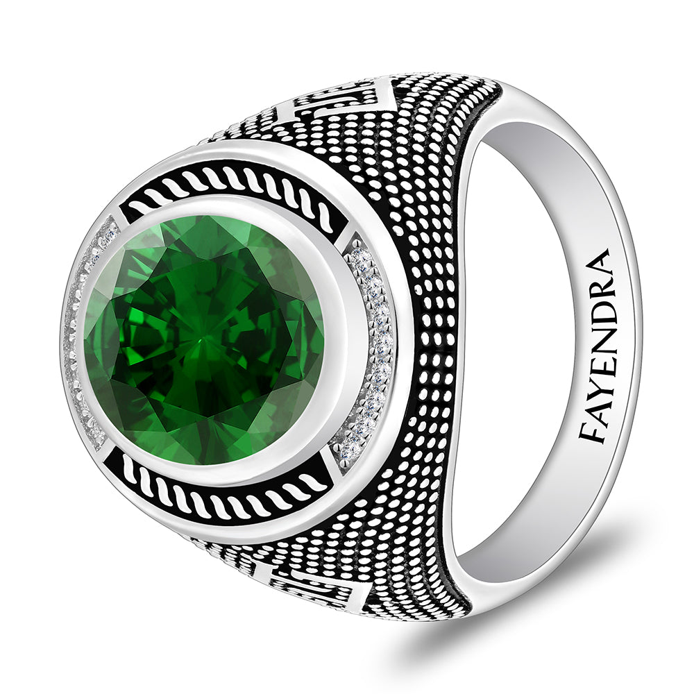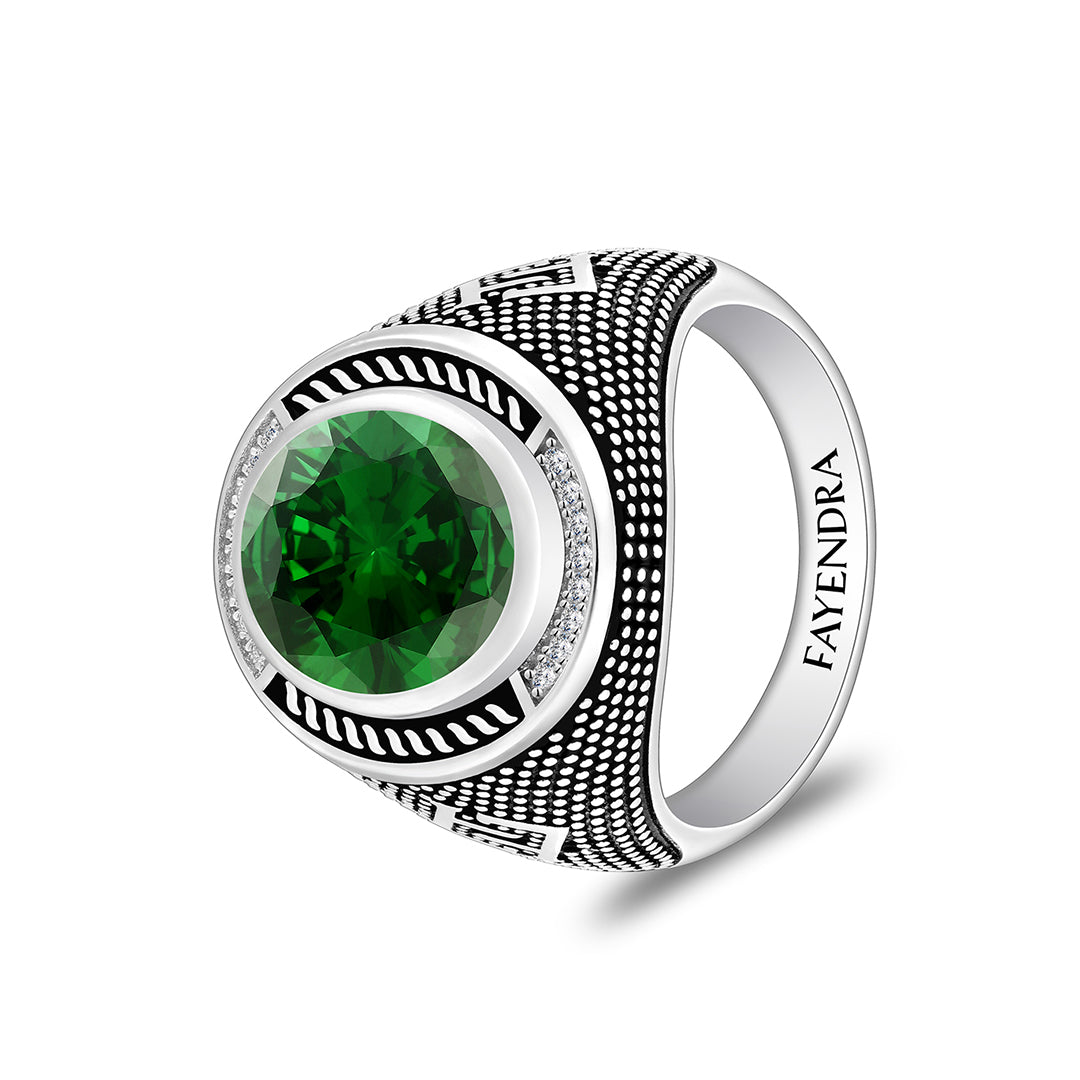 خاتم رجالي من الفضة الخالصة عيار 925 مطلي روديوم و اسود مرصع زركون زمردي و فص ابيض