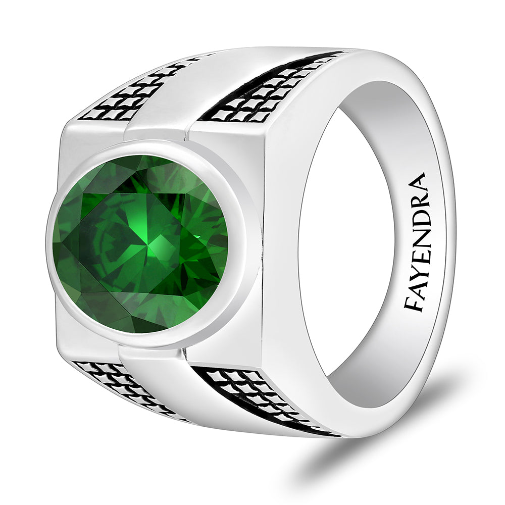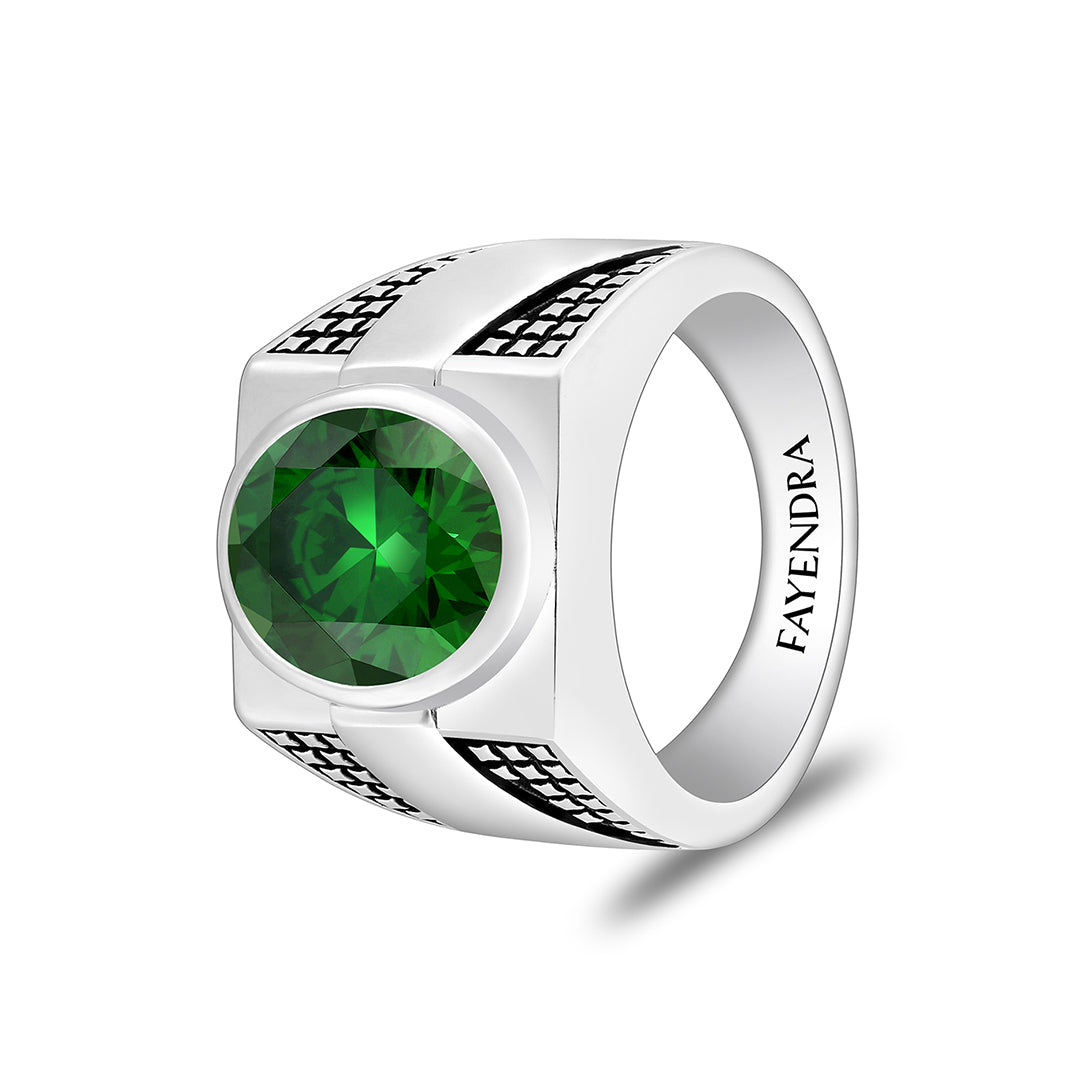 خاتم رجالي من الفضة الخالصة عيار 925 مطلي روديوم و اسود مرصع زركون زمردي