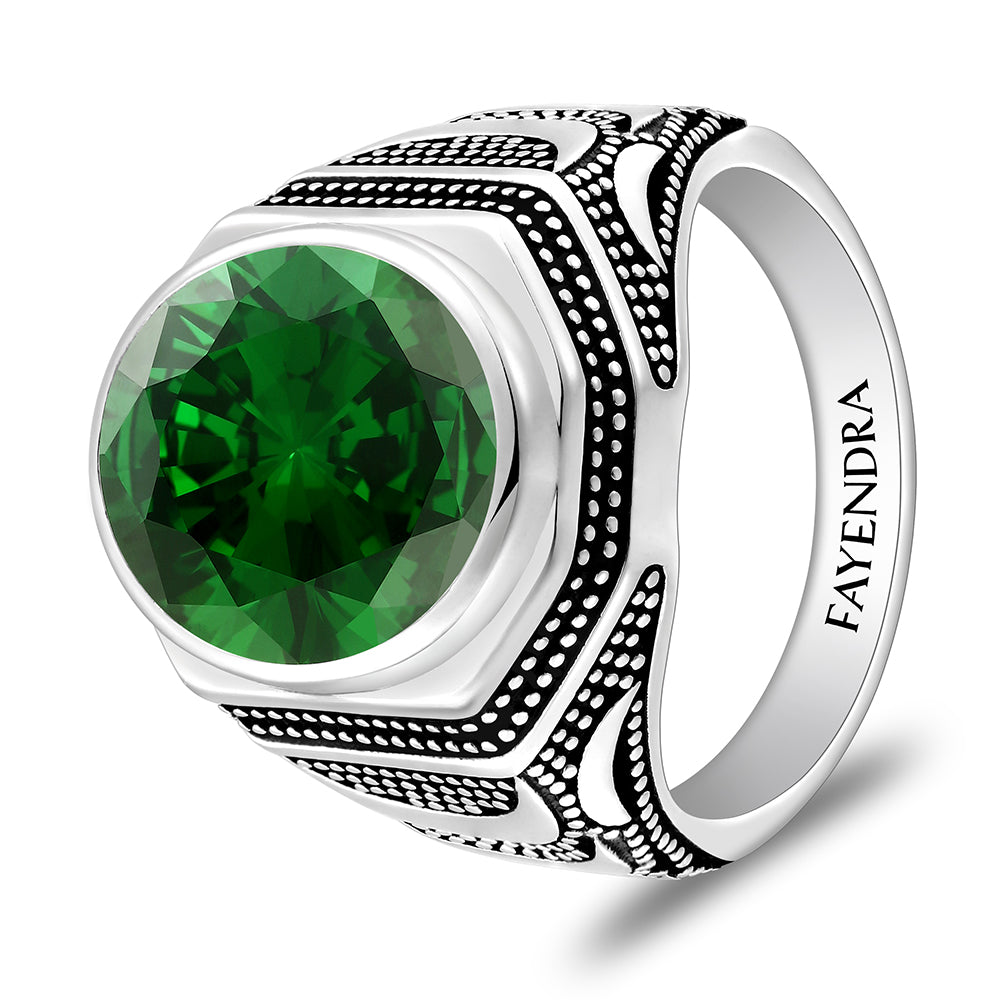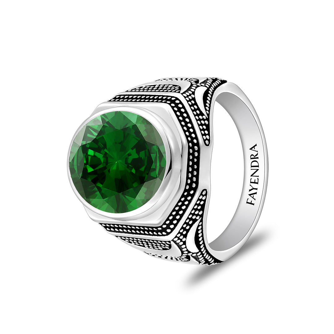 خاتم رجالي من الفضة الخالصة عيار 925 مطلي روديوم و اسود مرصع زركون زمردي