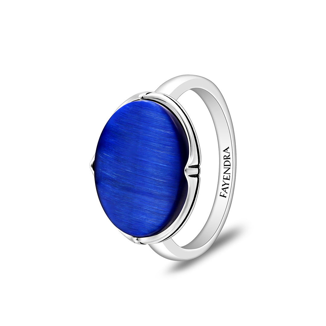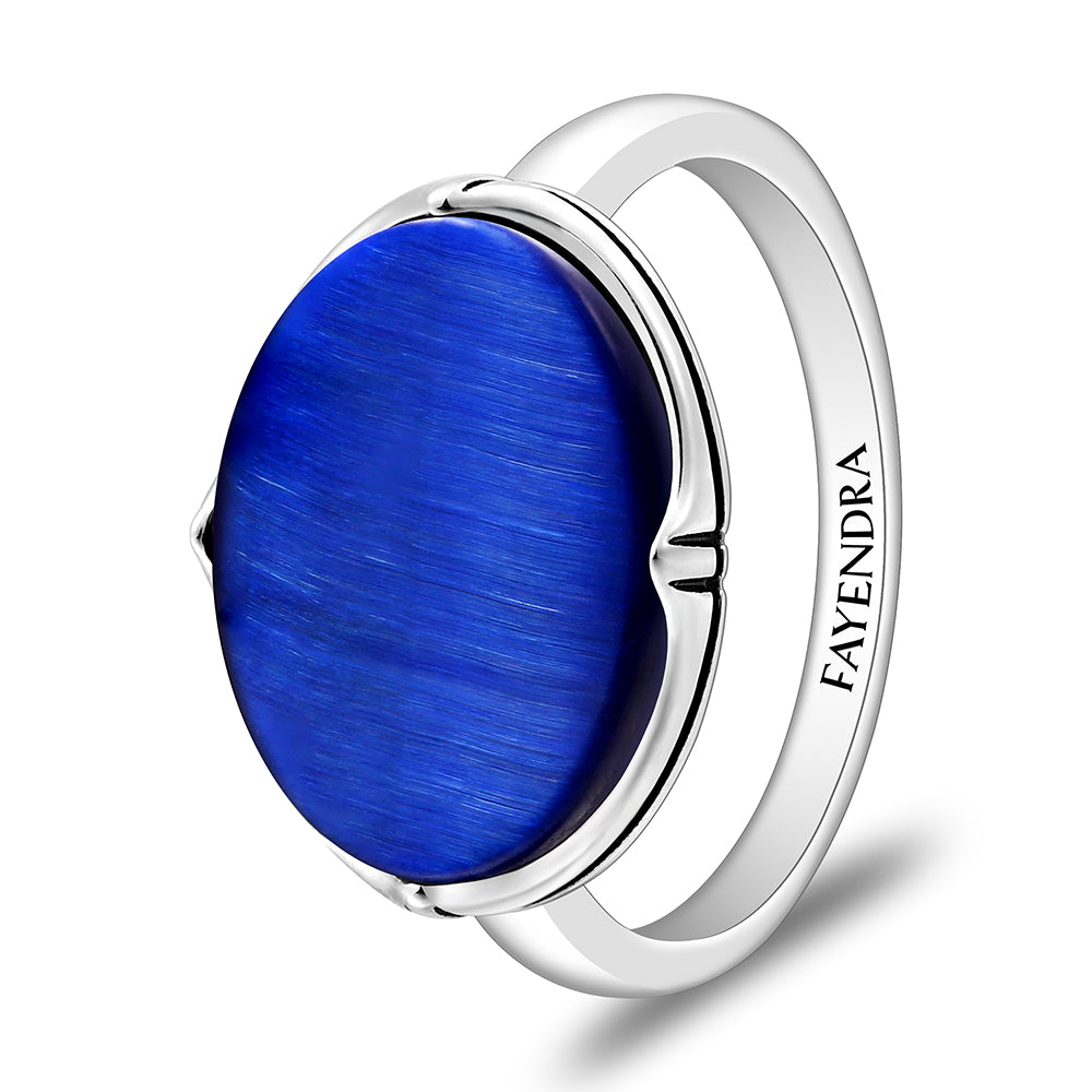 خاتم رجالي من الفضة الخالصة عيار 925 مطلي روديوم و اسود مرصع احجار عين النمر ازرق ملكي