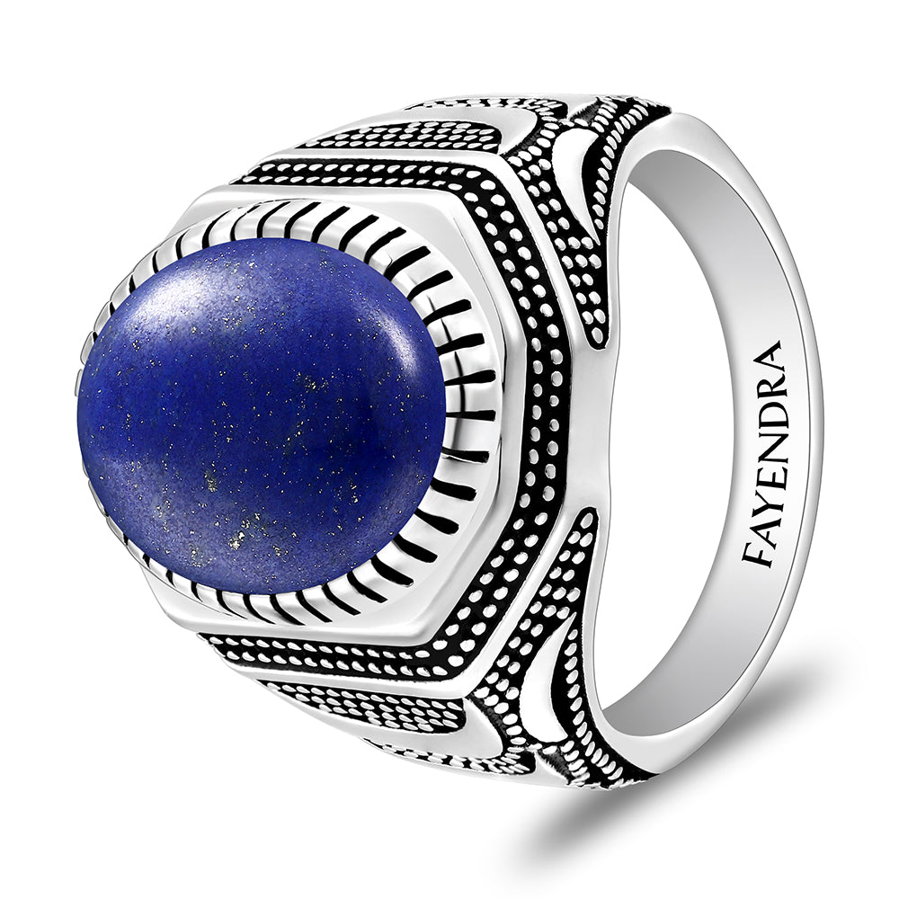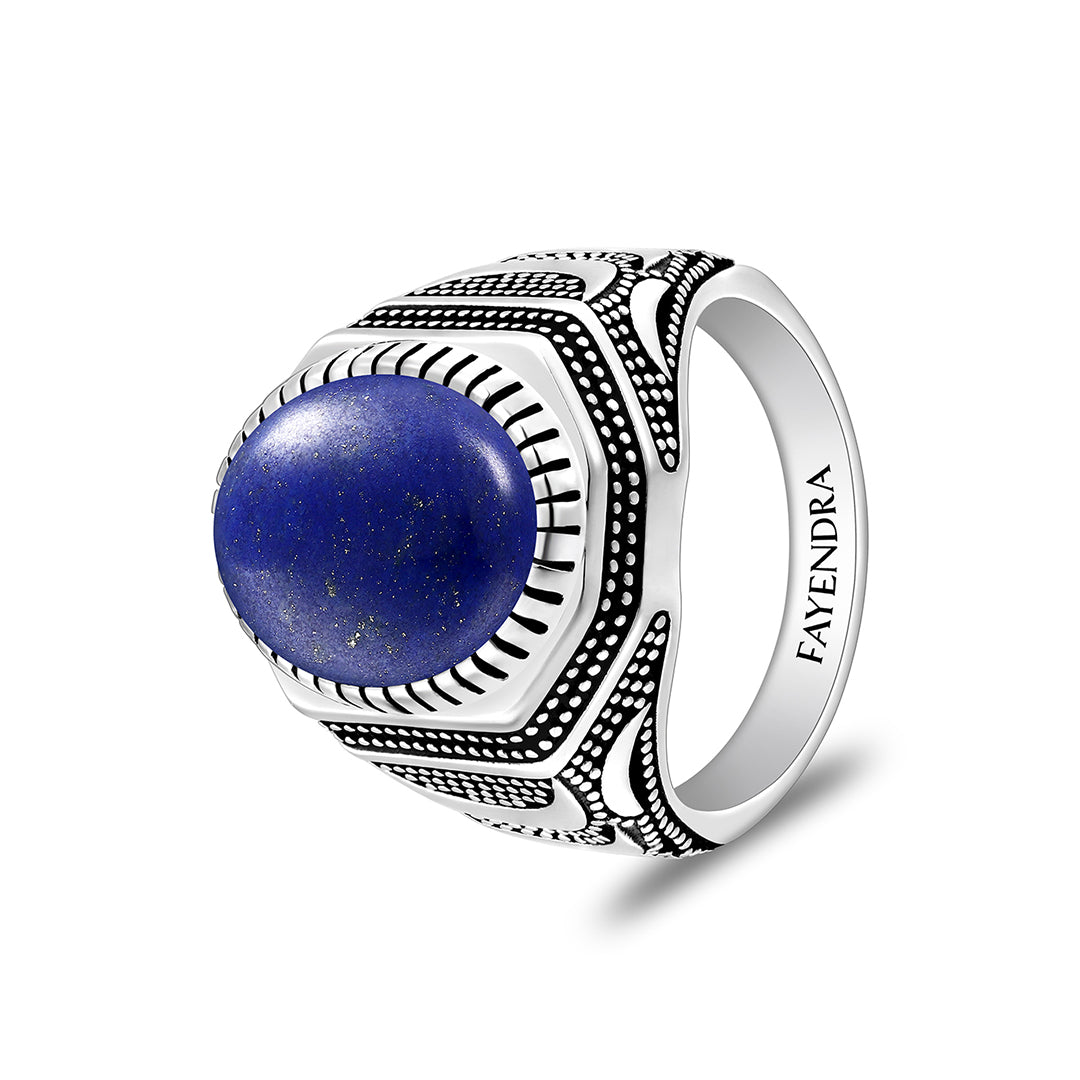 خاتم رجالي من الفضة الخالصة عيار925 مطلي روديوم و اسود مرصع حجر لابيس كابشون