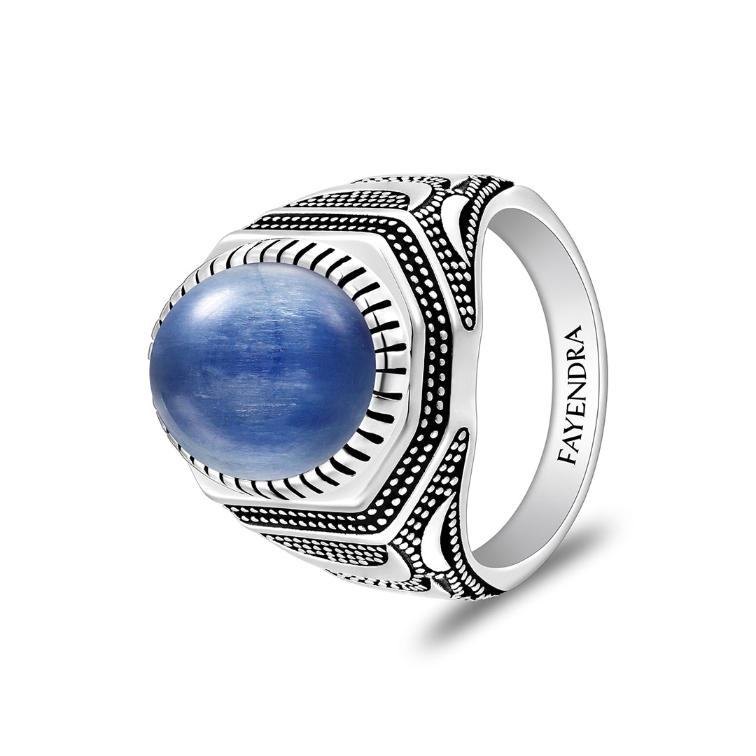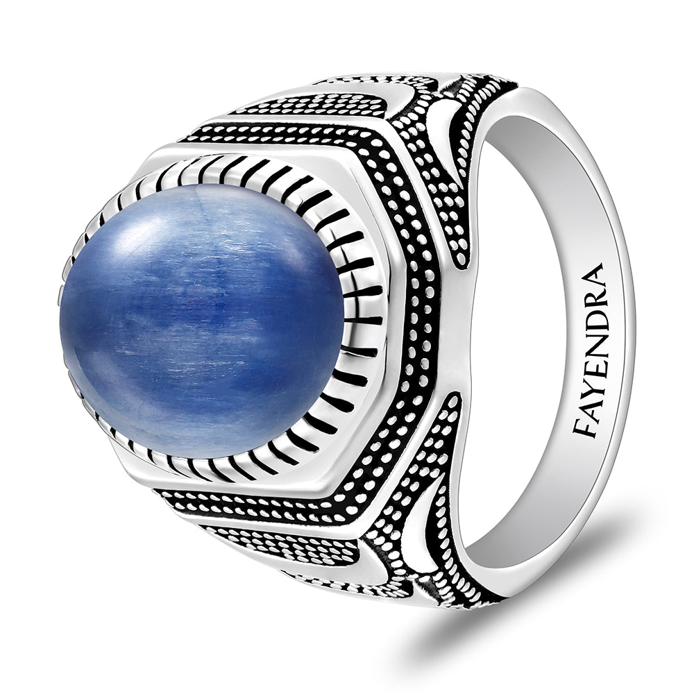 خاتم رجالي من الفضة الخالصة عيار 925 مطلي روديوم و اسود مرصع احجار كيانيت طبيعي كابشون
