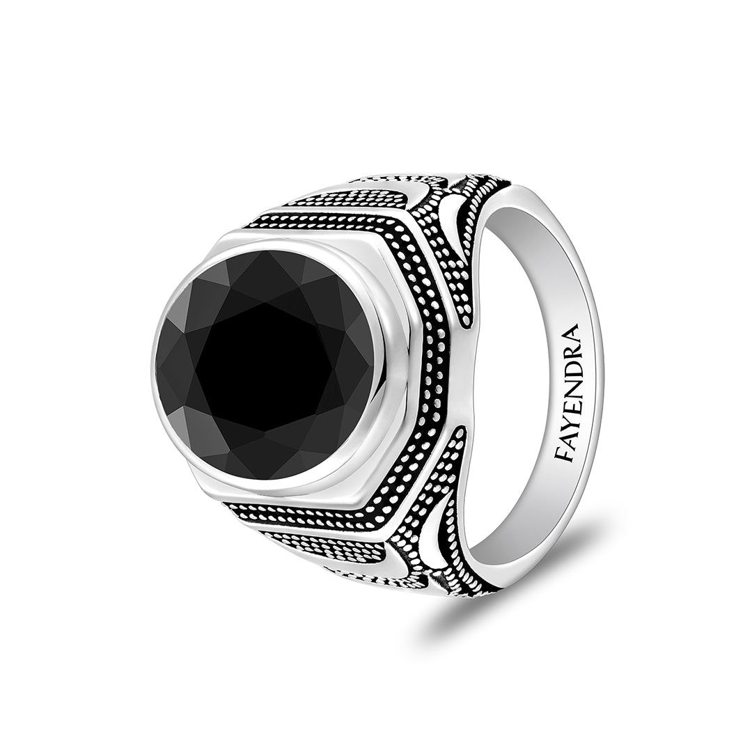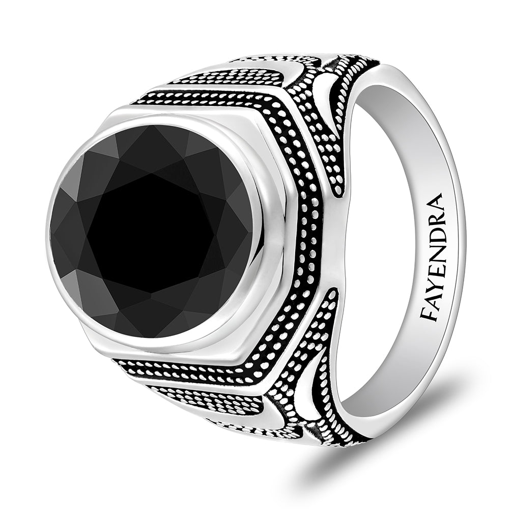 خاتم رجالي من الفضة الخالصة عيار 925 مطلي روديوم و اسود مرصع احجار اونكس سبينل