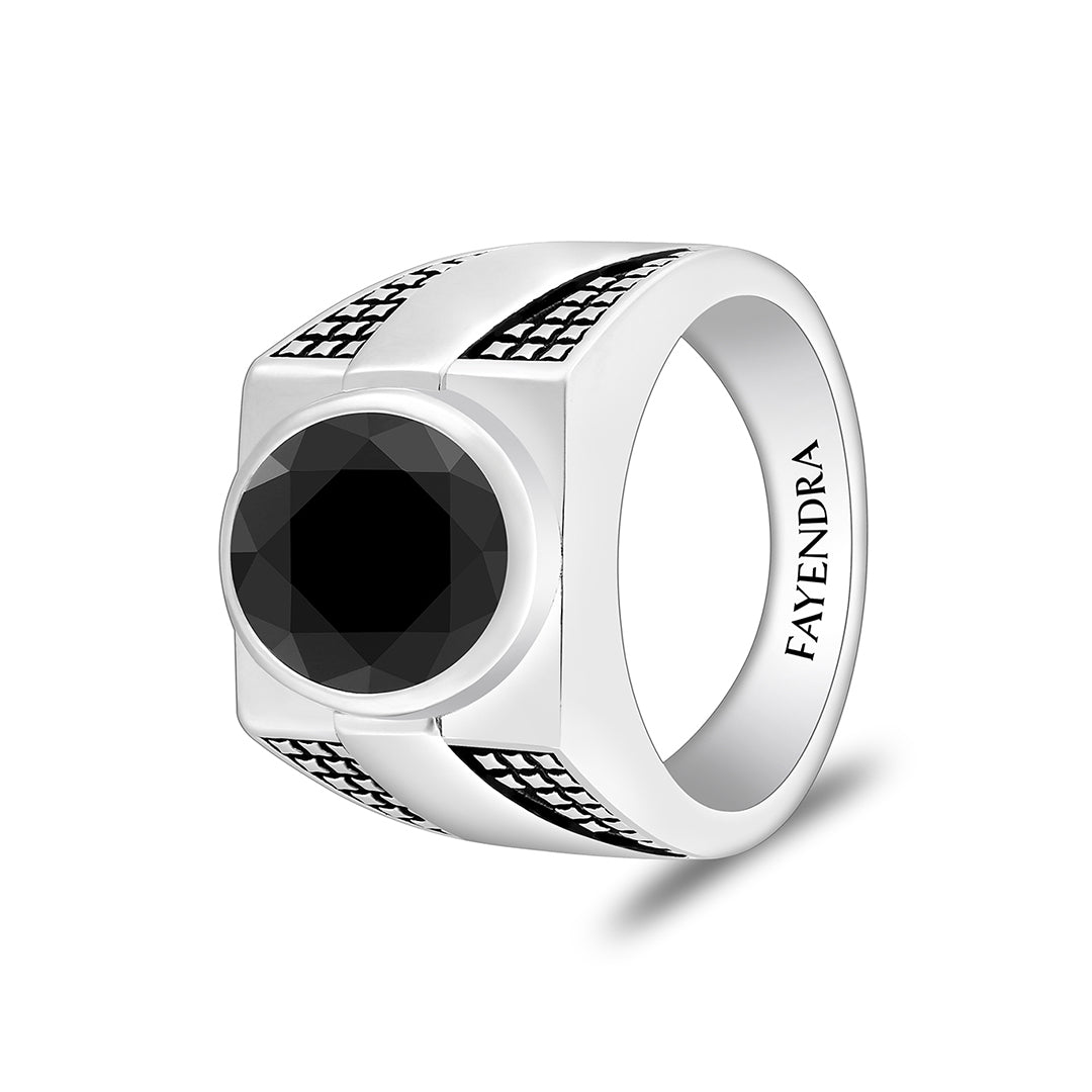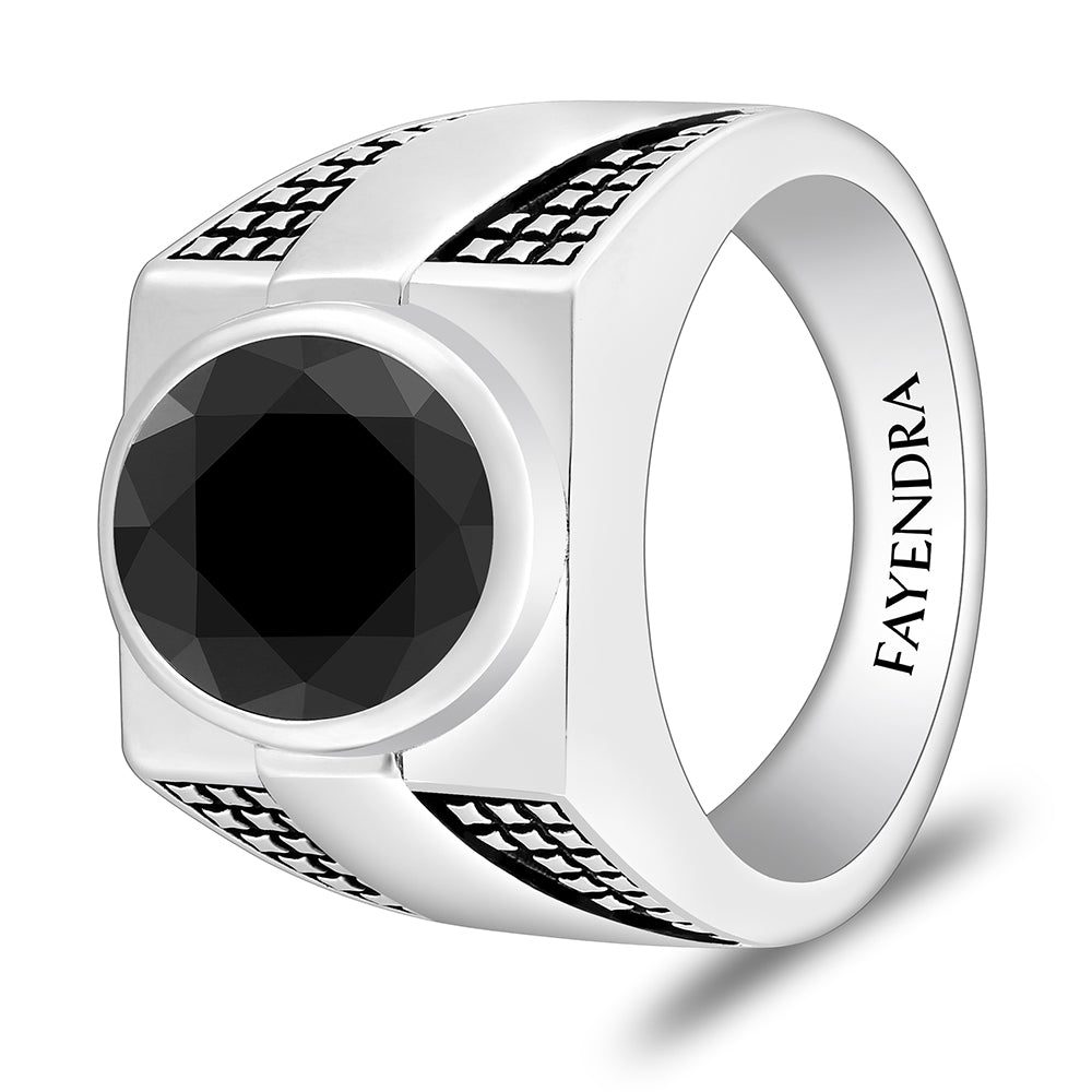 خاتم رجالي من الفضة الخالصة عيار 925 مطلي روديوم و اسود مرصع احجار اونكس سبينل