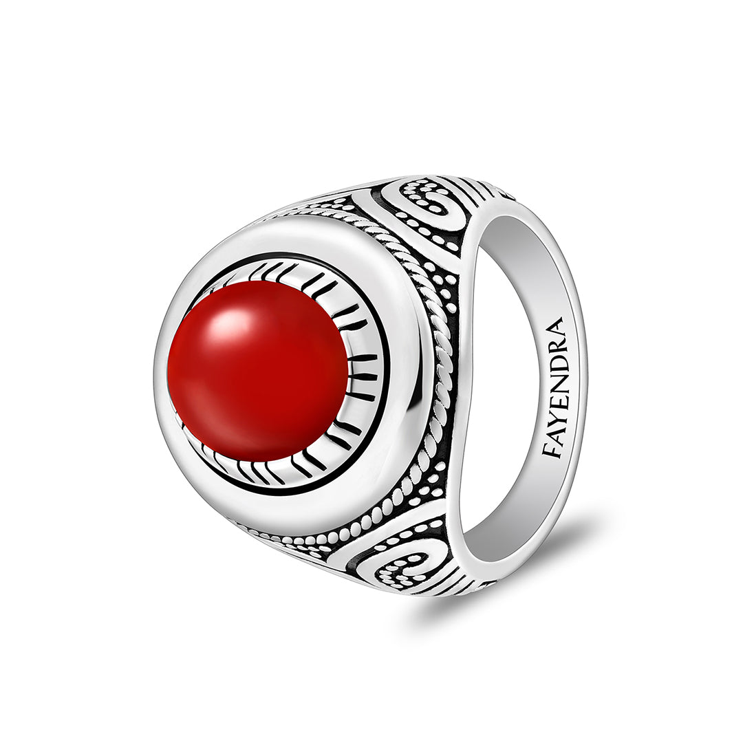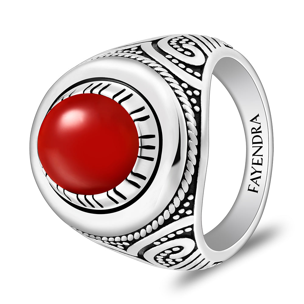 خاتم رجالي من الفضة الخالصة عيار 925 مطلي روديوم و اسود مرصع احجارعقيق احمر كابشون