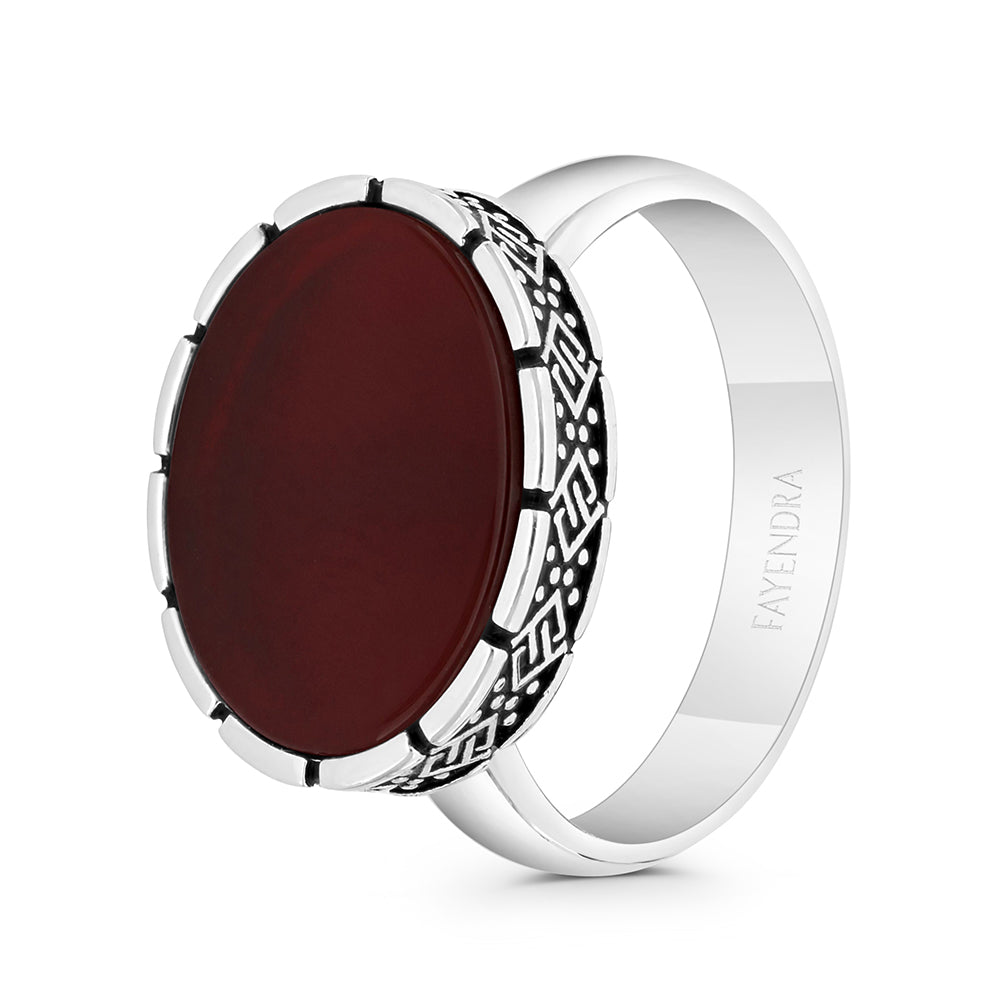 خاتم رجالي من الفضة الخالصة عيار 925 مطلي روديوم و اسود مرصع احجار عقيق طبيعي