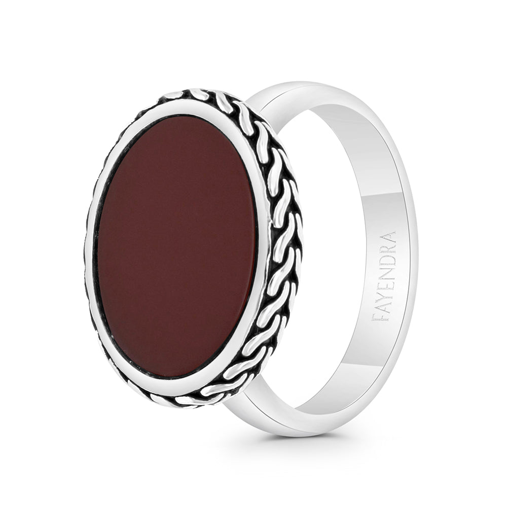 خاتم رجالي أنيق من الفضة الإسترليني عيار 925 مرصع بحجر العقيق الأحمر الطبيعي ومطلي بالروديوم. هدية مثالية لتعبّر عن تقديرك