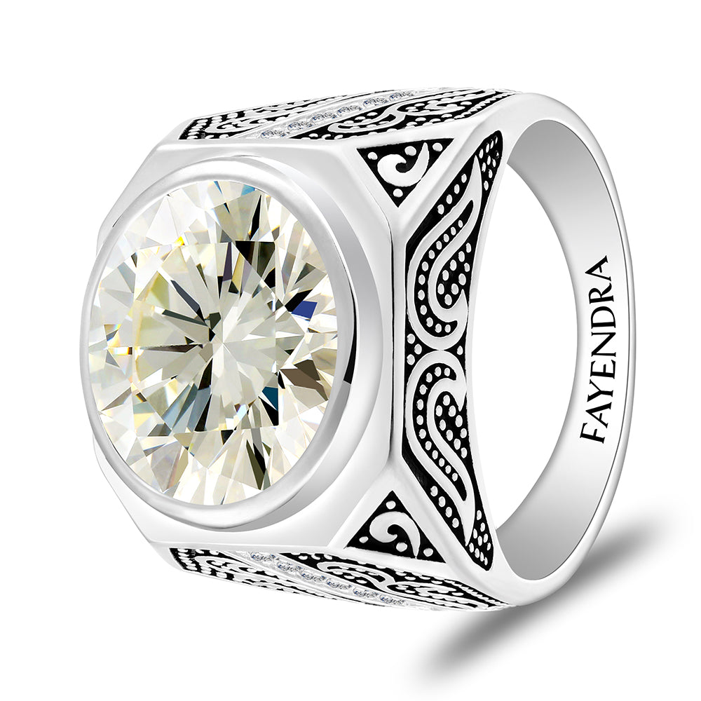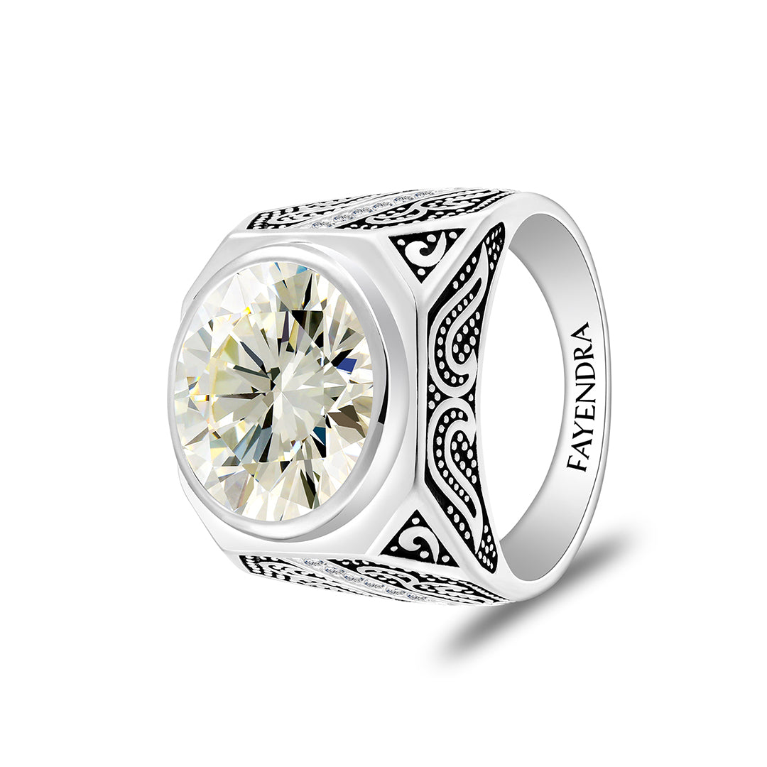خاتم رجالي من الفضة الخالصة عيار 925 مطلي روديوم و اسود مرصع زركون اصفر و فص ابيض