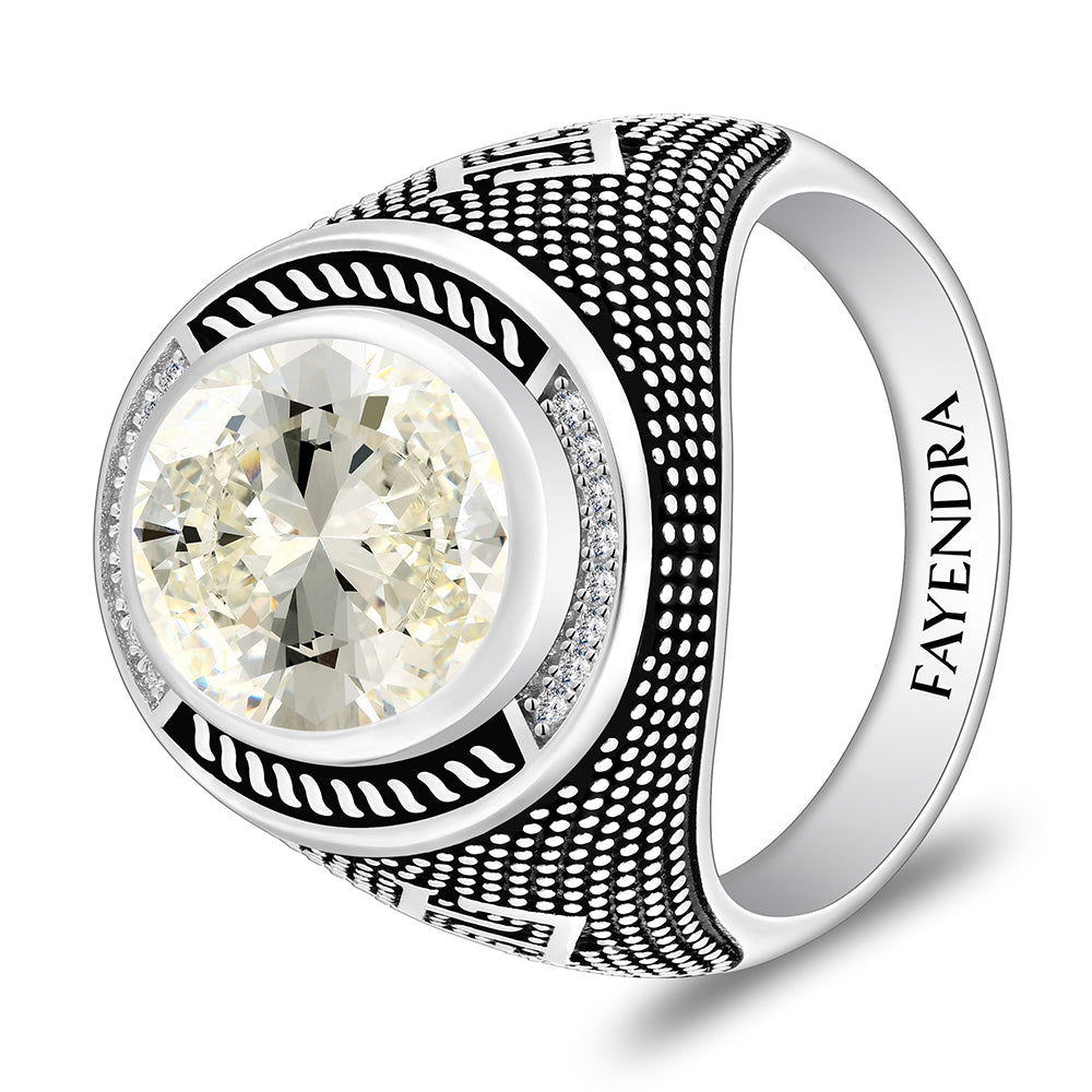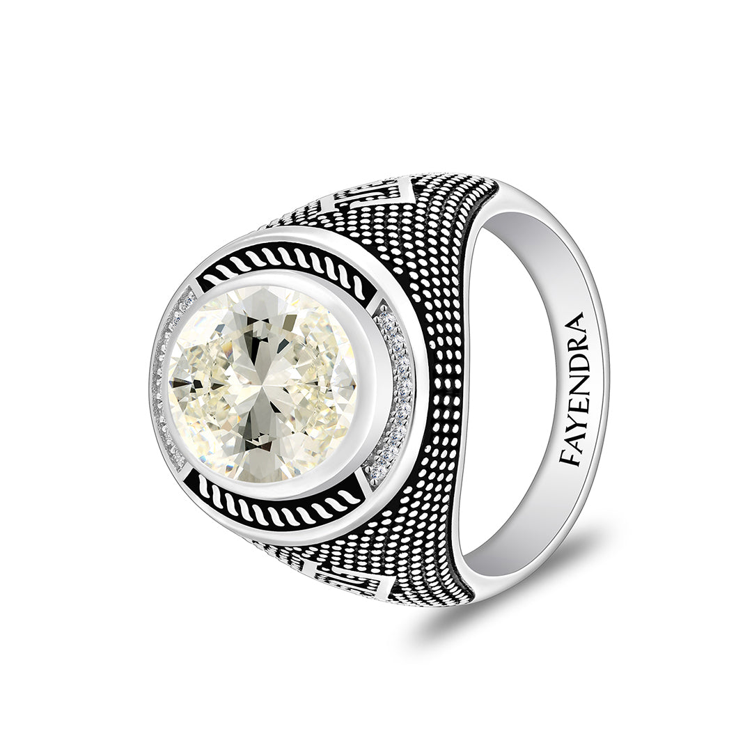 خاتم رجالي من الفضة الخالصة عيار 925 مطلي روديوم و اسود مرصع زركون اصفر و فص ابيض