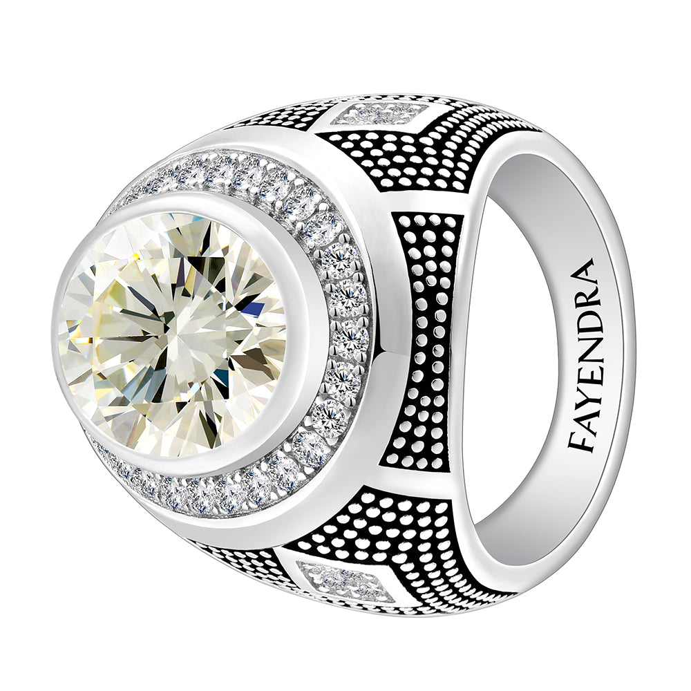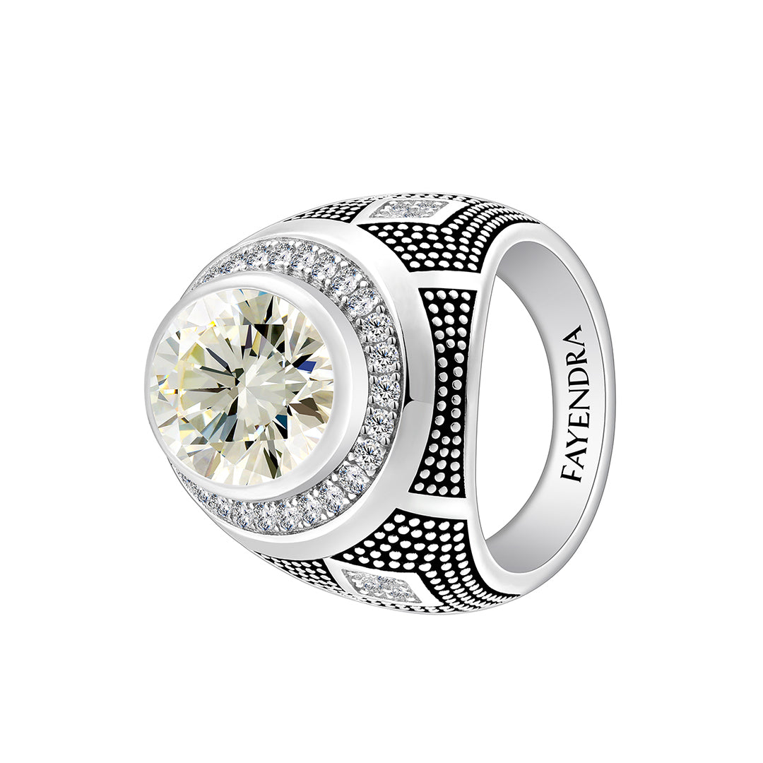 خاتم رجالي من الفضة الخالصة عيار 925 مطلي روديوم و اسود مرصع زركون اصفر و فص ابيض