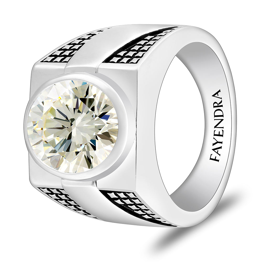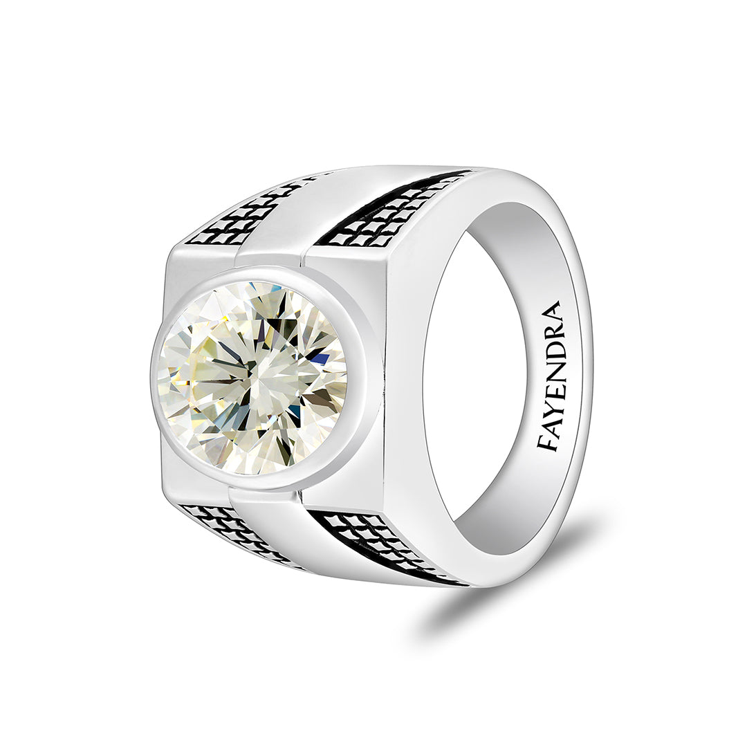 اجذب الأنظار بلمستك المتفرّدة وارتدِ التميّز مع هذا الخاتم الرجالي الفريد، المصنوع من فضة إسترلينية خالصة عيار 925 والمطلي بطبقة حماية من الروديوم لتعزيز لمعانه الراقي. يتوسّط التصميم حجر زركون أصفر، حيث يعكس الأضواء بلمعانه الساحر، ويمنح الخاتم هالة آسرة من التفرّد. أما النقوش الهندسية من الخطوط المستقيمة والمربعات السوداء التي تكسو كامل الخاتم، فهي تضيف لمسة عصرية أنيقة تُعبّر عن قوة الحضور ودقّة التفاصيل. تصميم يخطف الأنفاس ويحمل في طياته الكثير من الجاذبية، لن تتوقف عن التفكير به!